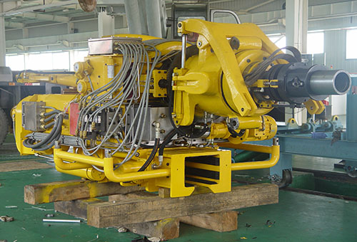 頂部驅(qū)動(dòng)鉆井裝置,可以直接從井架空間上部直接旋轉(zhuǎn)鉆柱,并沿井架內(nèi)專用導(dǎo)軌向下送進(jìn),完成鉆柱旋轉(zhuǎn)鉆進(jìn)、循環(huán)鉆井液、接單根、上卸扣和倒劃眼等多種鉆井操作的鉆井裝備。頂驅(qū)減速機(jī)為頂驅(qū)裝置中的主要傳動(dòng)部件,實(shí)現(xiàn)從電機(jī)到鉆柱力矩與速度的傳遞和鉆井鉆具的提升