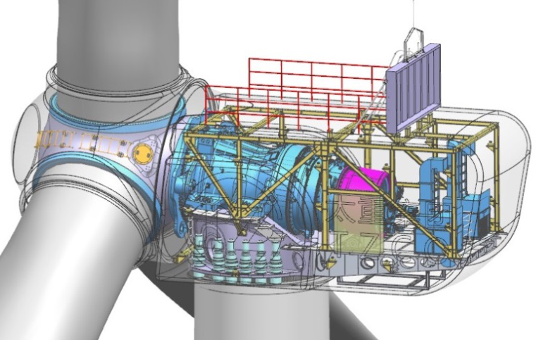 基于緊湊型主傳動鏈的機(jī)艙輕量、小尺寸,易于運(yùn)輸和吊裝,降低建設(shè)成本。
