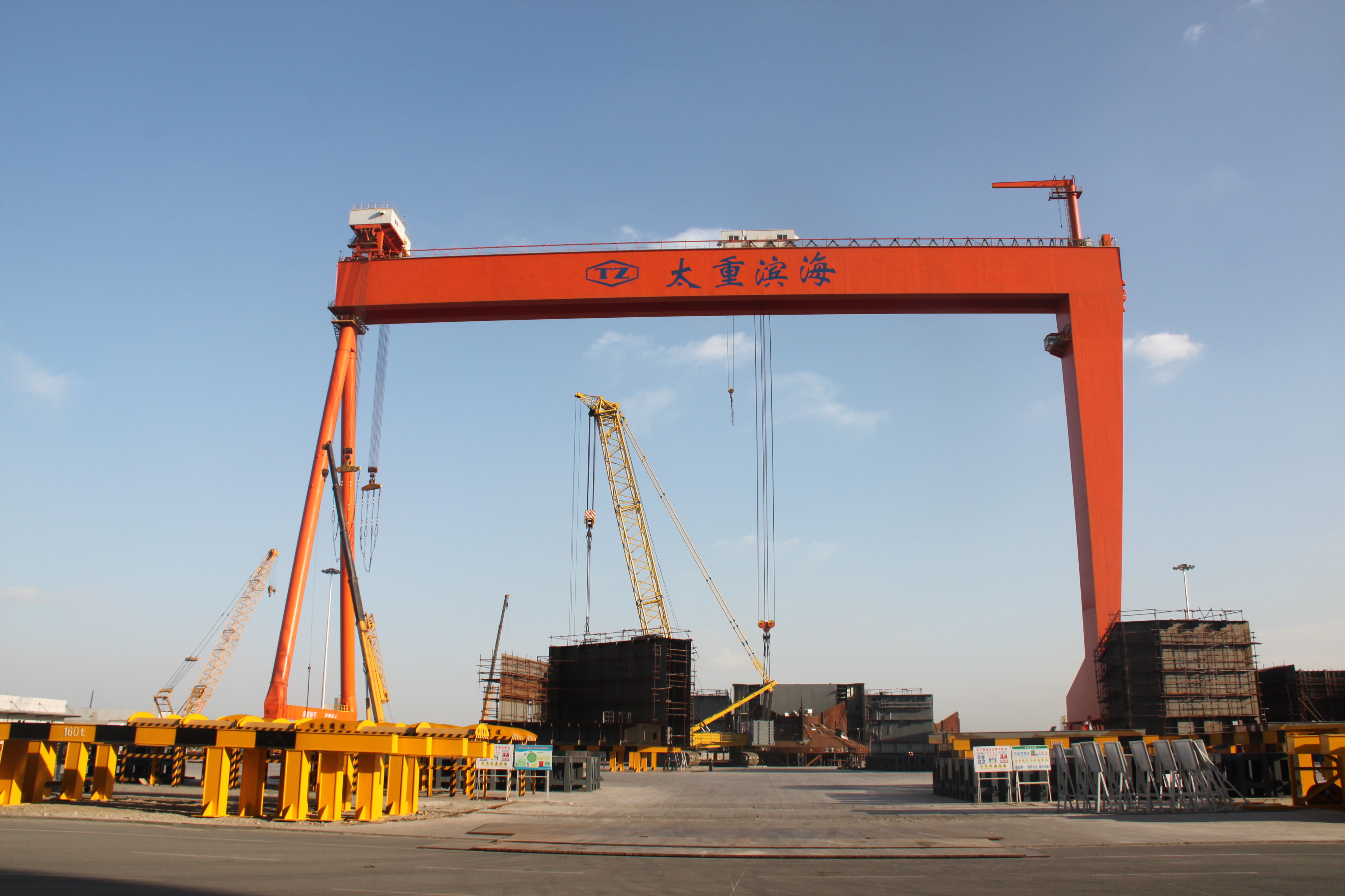 造船門機(jī)在地面軌道上運(yùn)行,用于船塢等大型焊接件吊裝作業(yè)的大型龍門起重機(jī),由水平橋架設(shè)置在兩條支腿上構(gòu)成門架形狀的橋架型起重機(jī)。其起升、小車運(yùn)行、橋架與橋式起重機(jī)相同。