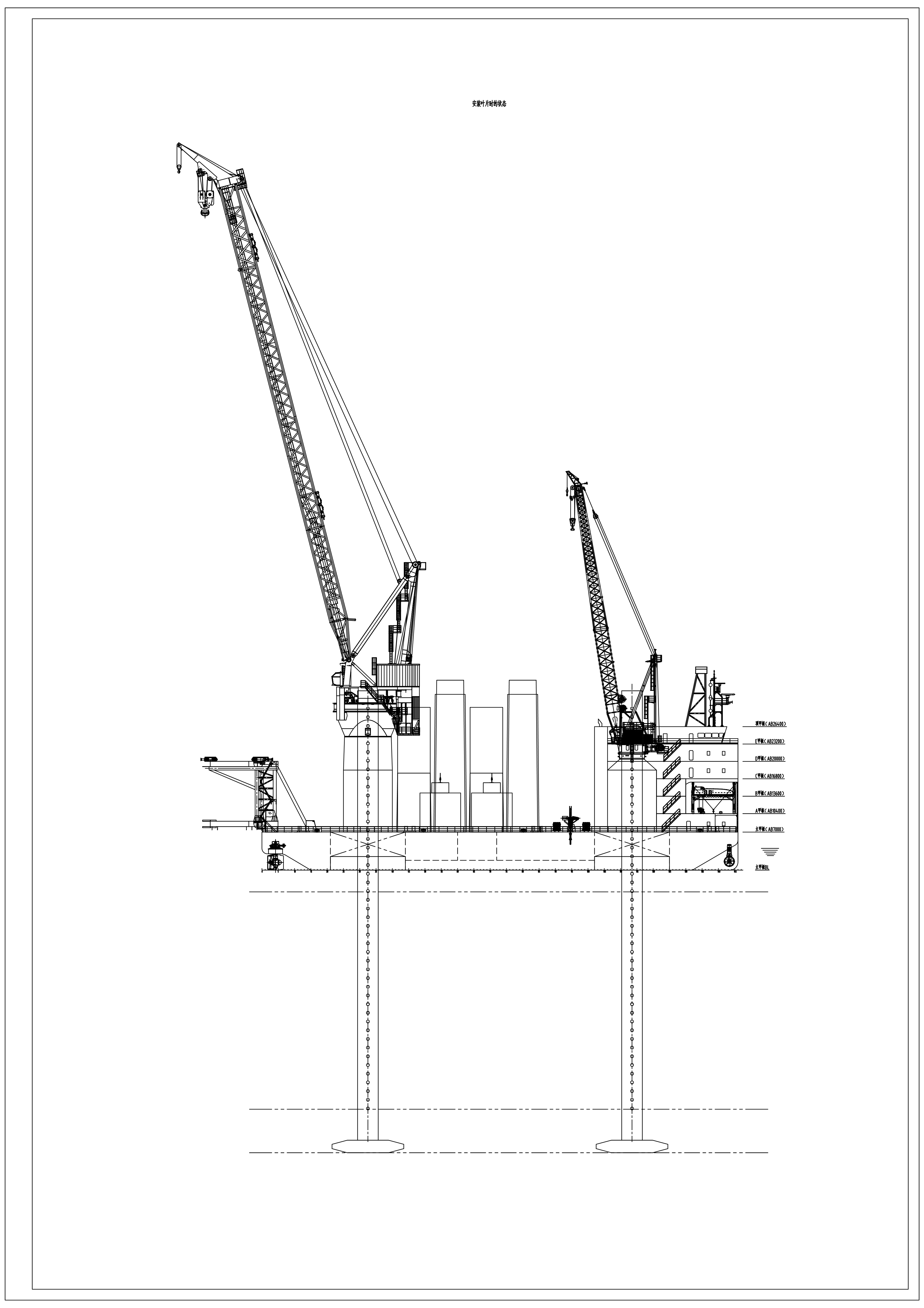 本平臺配有推進系統(tǒng)和動力定位系統(tǒng),具有一定的航速和操縱性,可自航至碼頭或施工場地,不需要拖航