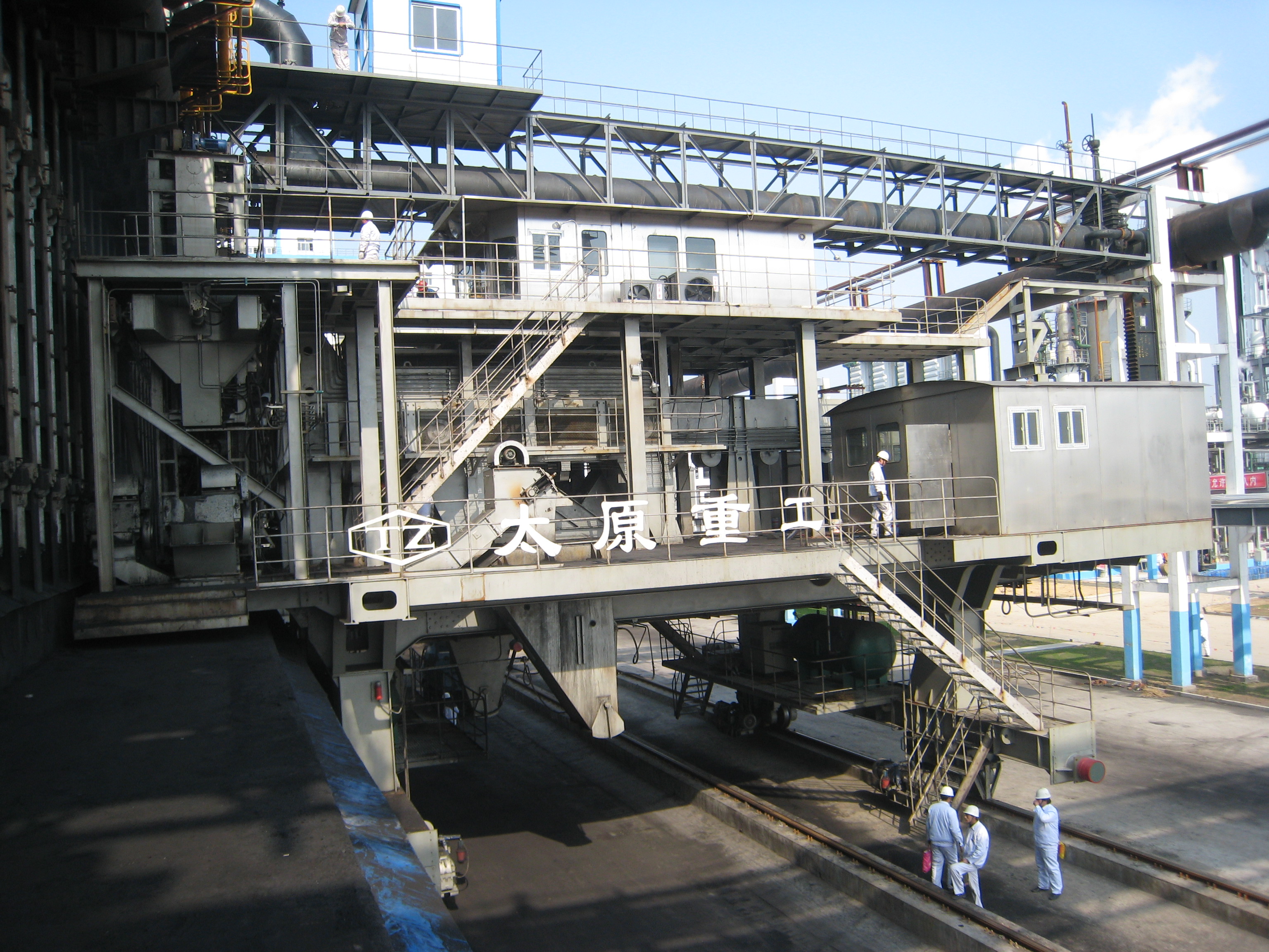 搗固型焦?fàn)t機(jī)械設(shè)備包含煉焦流程的全套機(jī)械設(shè)備:給料機(jī)完成煤粉由煤塔向裝煤車(chē)的轉(zhuǎn)運(yùn);搗固機(jī)將松散煤粉壓實(shí)形成煤餅;裝煤車(chē)接收煤餅并將其輸送至炭化室進(jìn)行煉焦;推焦車(chē)將焦炭由炭化室推送至熄焦車(chē)/焦罐車(chē);攔焦車(chē)完成炭化室與熄焦車(chē)/焦罐車(chē)的連通;電機(jī)車(chē)是熄焦車(chē)/焦罐車(chē)的牽引設(shè)備,完成焦炭由煉焦?fàn)t區(qū)到熄焦塔/干熄焦區(qū)的轉(zhuǎn)運(yùn);熄焦車(chē)接收熾熱焦炭,并在煤塔下完成濕熄焦過(guò)程;焦罐車(chē)接收焦炭后輸送至干熄焦區(qū)域進(jìn)行干熄焦區(qū)域進(jìn)行干熄焦工藝;導(dǎo)煙車(chē)負(fù)責(zé)收集與處理裝煤推焦過(guò)程中產(chǎn)生的煙塵;SCP機(jī)集搗固機(jī)、給料機(jī)、裝煤車(chē)、推焦車(chē)于一體,可實(shí)現(xiàn)移動(dòng)搗固,提高生產(chǎn)效率。