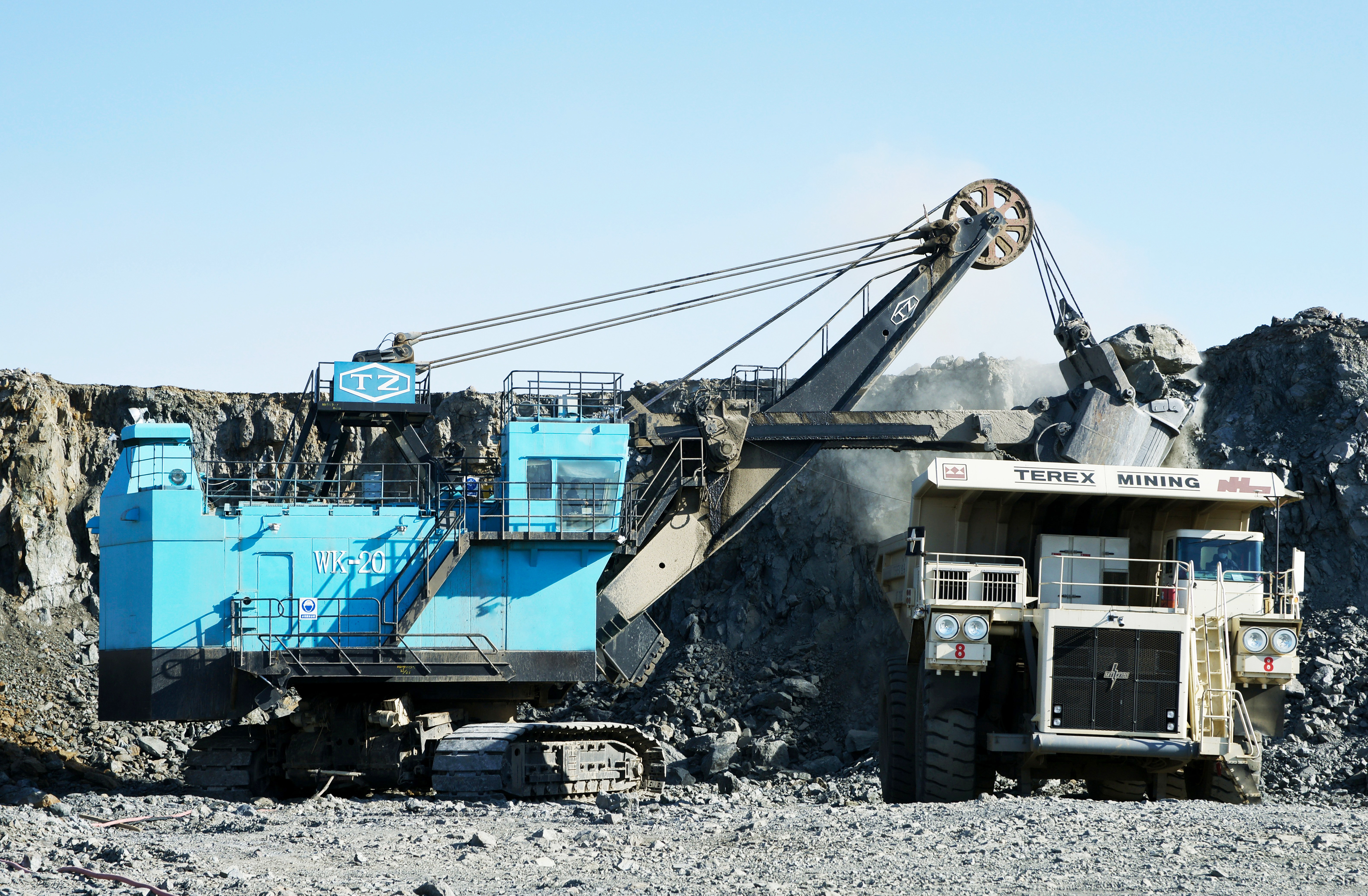 WK-20礦用挖掘機(jī)與108-220t礦用汽車配套使用,可適用于千萬(wàn)噸級(jí)大型露天煤礦、鐵礦及有色金屬礦山的剝離和采裝作業(yè)。