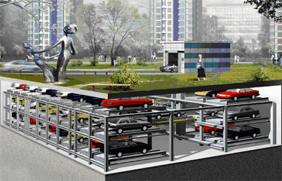 PPY平面移動類機(jī)械式停車設(shè)備是在同一水平層上用搬運器平面移動汽車或載車板,多層之間是靠升降機(jī)來實現(xiàn)不同層之間的轉(zhuǎn)換,實現(xiàn)汽車的存取。