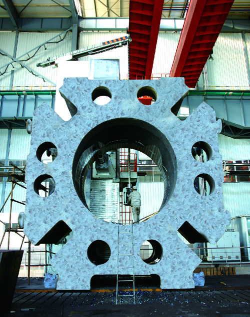 350MN多向復合擠壓機主體三大鑄件,屬全球特大型鑄鋼件。