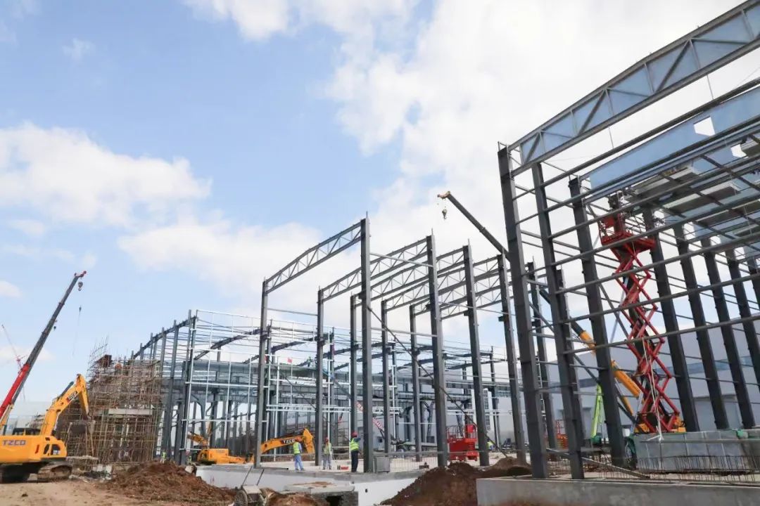 涂裝中心廠房土方回填已經(jīng)完成,鋼結(jié)構(gòu)拔地而起,工人正在進行主體鋼結(jié)構(gòu)的收尾和圍護結(jié)構(gòu)的前期工作。韓珍堂強調(diào),施工單位要在保證安全生產(chǎn)的基礎(chǔ)上,交叉作業(yè)、緊密配合、加速施工,確保各項工作按節(jié)點完成。要合理安排各項工序,主動跟進道路管網(wǎng)等基礎(chǔ)設(shè)施建設(shè),推動圍墻外的護坡以及外圍道路快速完工。
