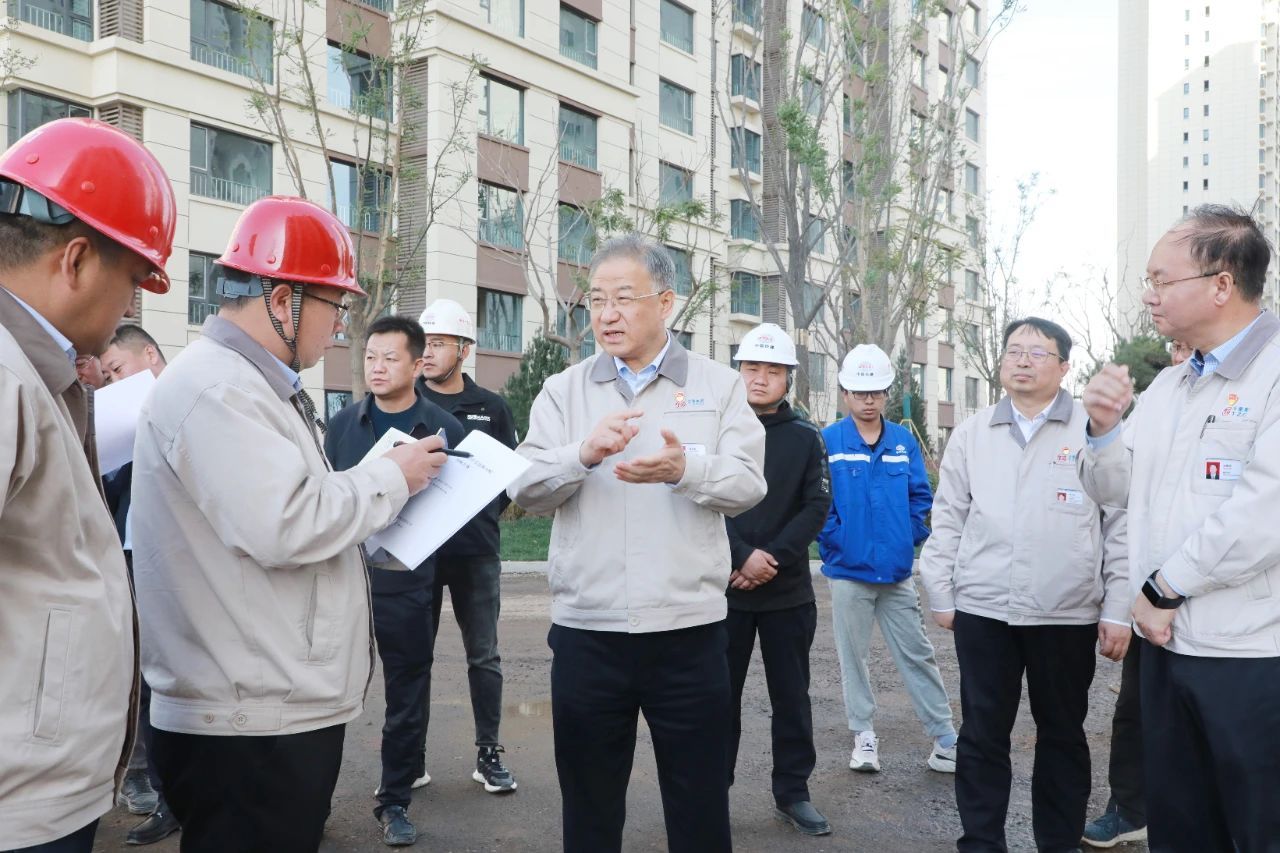 在新園區(qū)配套住宅項目現(xiàn)場,13棟現(xiàn)代化住宅樓高顏值呈現(xiàn),當(dāng)前園建及綠化工程進(jìn)入最后收尾階段,籃球場、足球場、網(wǎng)球場等運動場地正在安裝圍欄,幼兒園外墻裝飾已完成,分戶驗收及修整工作也在緊張推進(jìn)。韓珍堂沿著小區(qū)道路邊走邊看,對推進(jìn)綠化建設(shè)、施工進(jìn)度提出要求,他強調(diào),要統(tǒng)籌協(xié)調(diào)、增派人手,倒排工作計劃和時間節(jié)點,加快推進(jìn)施工進(jìn)度,全力以赴讓職工盡早入住、安居樂業(yè)。要高效推進(jìn)小區(qū)綠化建設(shè),科學(xué)搭配、合理布局,確保各類喬木灌木高低相間、錯落有致,打造高品質(zhì)、高質(zhì)量的綠化空間環(huán)境,增強職工群眾的獲得感和幸福感。要持續(xù)完善教育、生活等配套設(shè)施,加快推動前期工作,全方位滿足職工日常需求,打造功能設(shè)施完善、便利居民生活的高品質(zhì)社區(qū)。