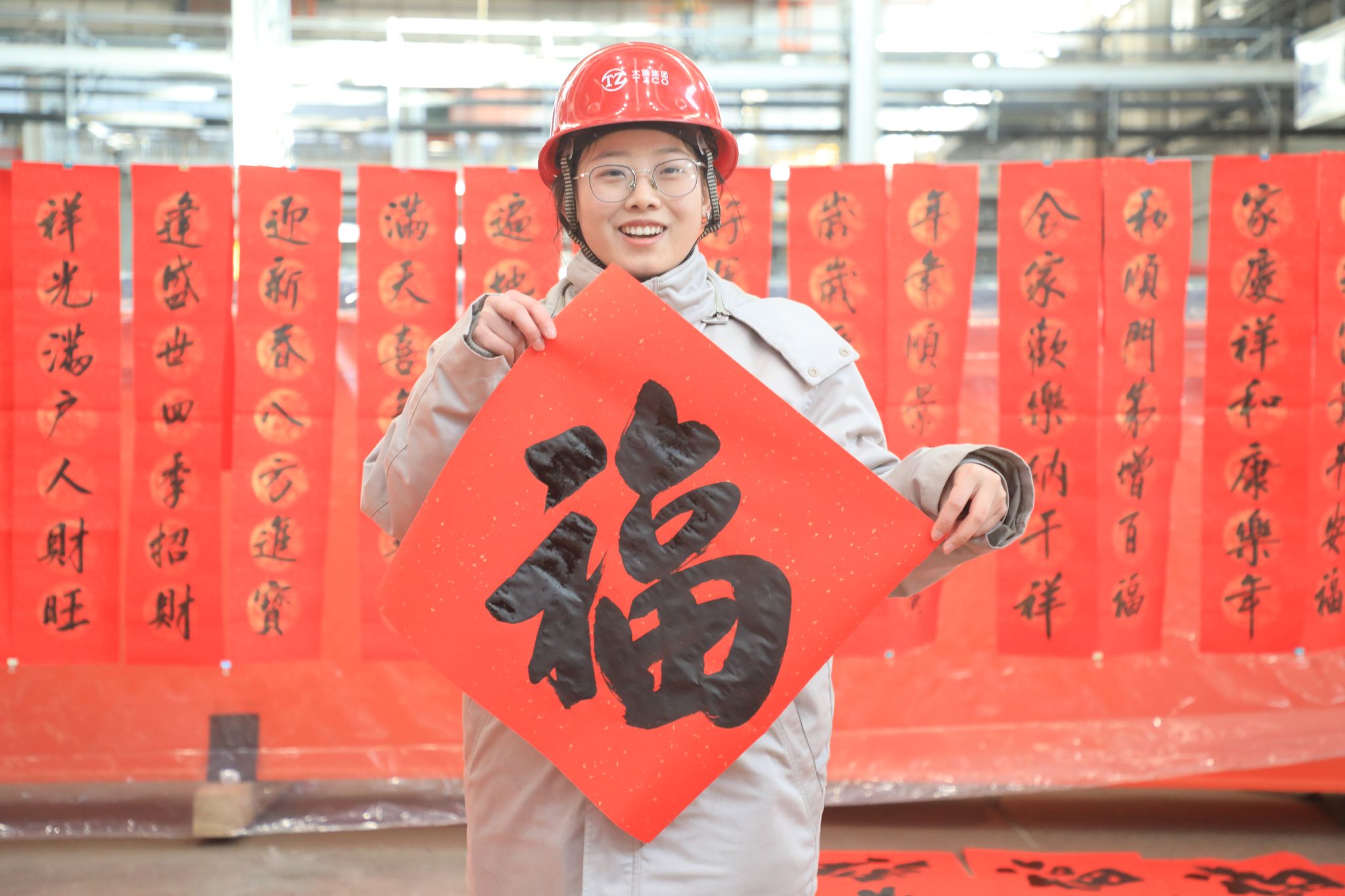 這些“?!睔鉂M滿的春聯(lián),充滿了對企業(yè)發(fā)展的美好期盼和對未來生活的無限憧憬,透著十足的年味,得到了職工們的熱烈稱贊。不一會兒功夫,桌上、地上就鋪滿了春聯(lián)和“?!弊?,好似一片喜慶的“紅地毯”?!袄蠋焸儸F(xiàn)場寫春聯(lián),與買春聯(lián)的感覺完全不同,這樣充滿儀式感的活動,讓大家的心里都暖融融的,來年要更加努力在自己的工作崗位上發(fā)光發(fā)熱!”職工們臉上洋溢著燦爛的笑容,開心無比。在現(xiàn)場,書法老師們共書寫春聯(lián)1000余副,并將這些蘊(yùn)含著辛勤汗水、美好祝愿的春聯(lián)送到職工手中,大家紛紛拿起手機(jī)拍照留念,記錄下這幸福的瞬間。