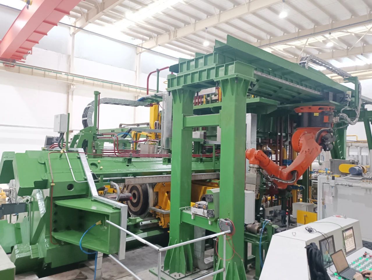 與時(shí)間賽跑,用質(zhì)量說話。近日,太重濱海公司傳來喜報(bào),在工作人員通力配合、努力奮戰(zhàn)下,28MN反向銅擠壓機(jī)順利完成熱負(fù)荷試車工作。這不僅是對(duì)智能化、智慧化設(shè)備技術(shù)升級(jí)的成功實(shí)踐,更是對(duì)太重服務(wù)質(zhì)量、響應(yīng)速度的一次重大考驗(yàn)。太重自主研發(fā)的28MN反向銅擠壓機(jī)是用于擠壓生產(chǎn)銅合金線材產(chǎn)品的設(shè)備,集自動(dòng)化、智能化、高端化于一體,在節(jié)能環(huán)保、平穩(wěn)運(yùn)行、安全性能等方面處于行業(yè)領(lǐng)先水平。此臺(tái)擠壓機(jī),在技術(shù)上進(jìn)行了升級(jí)迭代,將設(shè)備輔助機(jī)構(gòu)中的液壓驅(qū)動(dòng)部分,升級(jí)為伺服控制或電氣驅(qū)動(dòng)裝置,大幅降低了輔助機(jī)構(gòu)中液壓系統(tǒng)所占比例,既能縮短非擠壓時(shí)間、提高生產(chǎn)效率,也能保證設(shè)備的高控制精度、低故障率。同時(shí),模具循環(huán)系統(tǒng)特別采用模具循環(huán)機(jī)器人,實(shí)現(xiàn)了模具加熱、打磨、拆模、裝模自動(dòng)化循環(huán)。 與普通擠壓機(jī)相比,反向銅擠壓機(jī)輔助機(jī)構(gòu)數(shù)量更多,工藝流程更為復(fù)雜,調(diào)試任務(wù)也更加繁重??紤]到用戶的生產(chǎn)節(jié)奏,項(xiàng)目進(jìn)入調(diào)試階段后,公司技術(shù)中心鍛壓所技術(shù)人員和鍛壓設(shè)備分廠現(xiàn)場(chǎng)安調(diào)人員相互配合,加快調(diào)試進(jìn)度,晚上測(cè)試設(shè)備運(yùn)行情況、發(fā)現(xiàn)問題,白天調(diào)試設(shè)備、解決問題,團(tuán)隊(duì)齊心協(xié)力搶工期,克服種種困難將調(diào)試周期提前了7天,順利完成設(shè)備熱負(fù)荷試車。 錨定新質(zhì)生產(chǎn)力,釋放發(fā)展新動(dòng)能。該項(xiàng)目的順利試車是制造業(yè)與智能化的又一次深度融合,是“太重制造”向“太重智造”轉(zhuǎn)型的成功之舉,也是公司交給用戶的一份完美答卷。未來,太重將繼續(xù)堅(jiān)持創(chuàng)新引領(lǐng),提升服務(wù)質(zhì)量,以新產(chǎn)品、新技術(shù)推動(dòng)行業(yè)進(jìn)步,以優(yōu)質(zhì)服務(wù)獲得更多用戶信任,勇當(dāng)高質(zhì)量高速度發(fā)展路上的“排頭兵”。