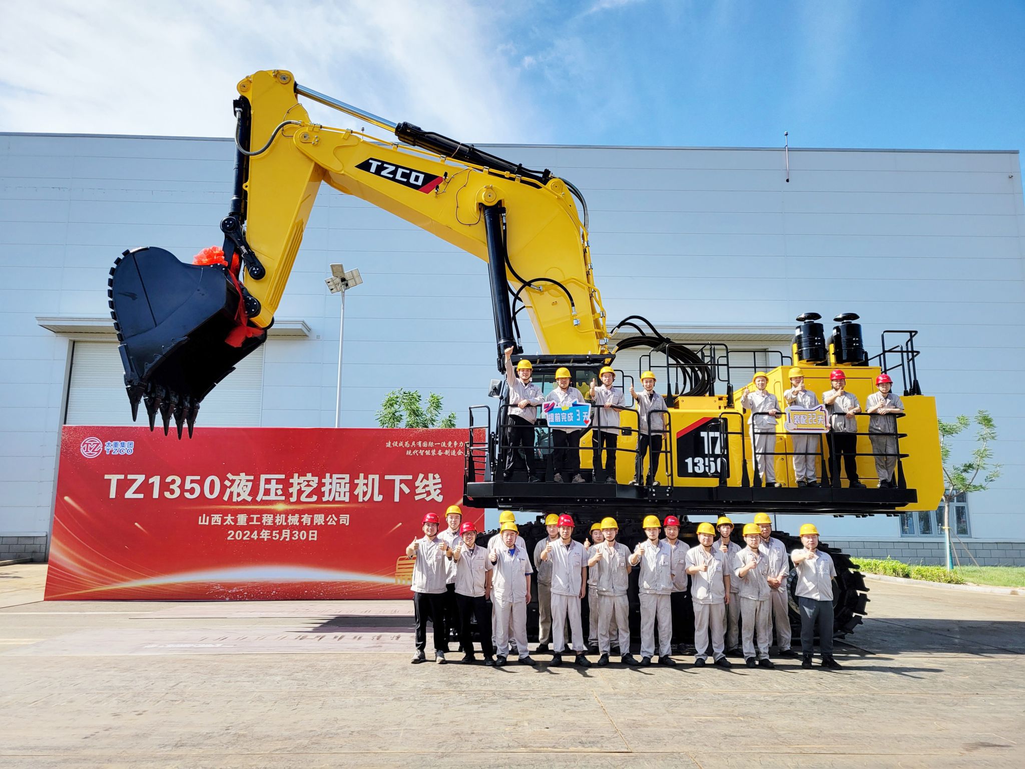 5月30日,太重智能高端液壓挖掘機(jī)產(chǎn)業(yè)園區(qū)迎來(lái)一位超百噸級(jí)的“重量選手”,它機(jī)身明黃、身帶紅花、頂天立地,在眾人期待目光中緩緩駛出,這臺(tái)TZ1350是太重自主研發(fā)、推入市場(chǎng)的又一款大噸位液壓反鏟挖掘機(jī),展開(kāi)“太重臂膀”,擎起廣闊未來(lái)。針對(duì)露天礦山高溫、高寒、高海拔等情況,這個(gè)“大家伙”可是露天礦山采掘的一把好手