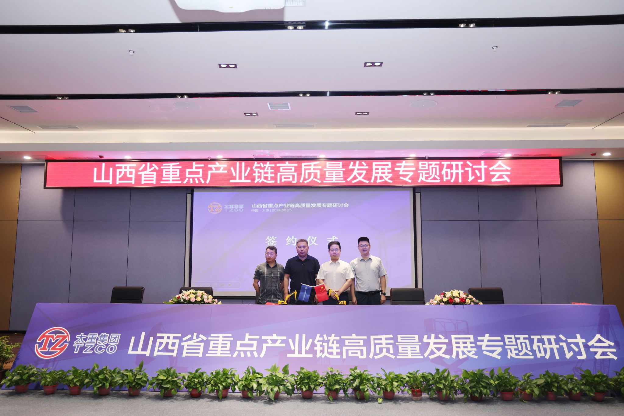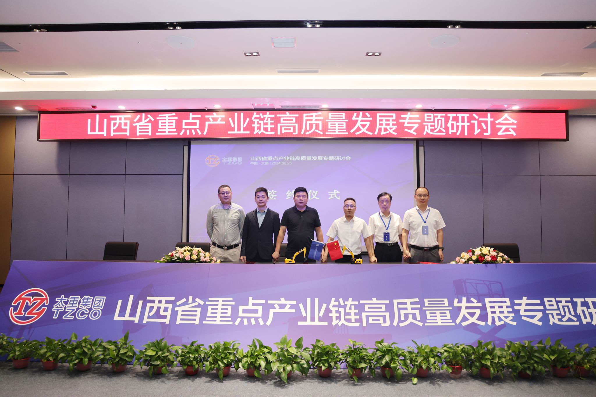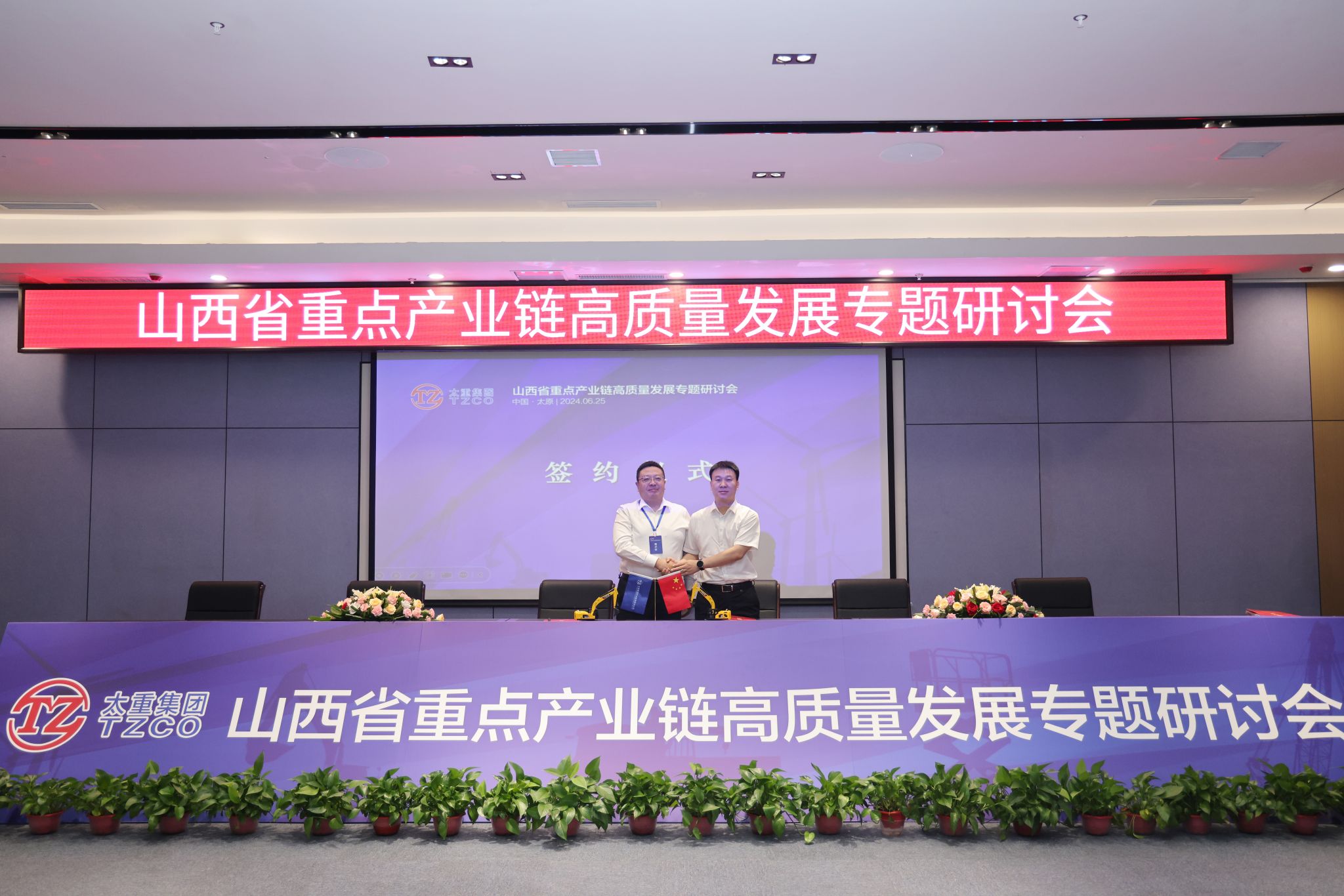 省工信廳一級(jí)巡視員張占祥,省能源局二級(jí)巡視員楊仁澤,山西轉(zhuǎn)型綜改示范區(qū)黨工委委員、管委會(huì)副主任陳曦及相關(guān)單位負(fù)責(zé)人參加會(huì)議。集團(tuán)公司黨委副書(shū)記、副董事長(zhǎng)、總經(jīng)理陶家晉,副總經(jīng)理韓肖重參加會(huì)議。2022年5月27日,太重被授予全省高端裝備制造產(chǎn)業(yè)和風(fēng)電裝備產(chǎn)業(yè)鏈“鏈主”企業(yè)。兩年多來(lái),太重勇?lián)半p鏈主”企業(yè)使命責(zé)任,不斷強(qiáng)鏈、補(bǔ)鏈、延鏈,進(jìn)一步強(qiáng)化鏈上企業(yè)之間的良性互動(dòng),積極引入頭部企業(yè)入晉開(kāi)展戰(zhàn)略合作,“雙鏈主”龍頭作用持續(xù)顯現(xiàn),引領(lǐng)帶動(dòng)全省裝備制造業(yè)實(shí)現(xiàn)高質(zhì)量發(fā)展。張占祥對(duì)會(huì)議的召開(kāi)表示熱烈祝賀,提出三點(diǎn)建議。要把握大勢(shì),搶抓機(jī)遇,做大做強(qiáng)裝備制造業(yè)。依托山西省高端裝備制造(工程機(jī)械)產(chǎn)業(yè)聯(lián)盟和風(fēng)電裝備產(chǎn)業(yè)聯(lián)盟,不斷加強(qiáng)優(yōu)勢(shì)互補(bǔ),共同打造雙千億級(jí)產(chǎn)業(yè)鏈。要充分發(fā)揮“政府+鏈主+園區(qū)”招商合力,結(jié)合產(chǎn)業(yè)布局規(guī)劃,精準(zhǔn)鎖定招商目標(biāo),力爭(zhēng)在上中游環(huán)節(jié)補(bǔ)齊短板。要創(chuàng)新驅(qū)動(dòng),做到技高一籌,搶占戰(zhàn)略制高點(diǎn),帶動(dòng)產(chǎn)業(yè)鏈整體競(jìng)爭(zhēng)力不斷提升。政府部門和企業(yè)要加強(qiáng)合作、凝心聚力、共謀發(fā)展,努力使工程機(jī)械產(chǎn)業(yè)和風(fēng)電產(chǎn)業(yè)成為推動(dòng)我省工業(yè)高質(zhì)量發(fā)展、奮進(jìn)“兩個(gè)基本實(shí)現(xiàn)”目標(biāo)的成長(zhǎng)性產(chǎn)業(yè)。楊仁澤認(rèn)為本次研討會(huì)接地氣、重實(shí)效,他表示,各有關(guān)企業(yè)要緊抓政策機(jī)遇、市場(chǎng)機(jī)遇,推動(dòng)產(chǎn)業(yè)鏈做大做強(qiáng)。要深化協(xié)作,推動(dòng)產(chǎn)業(yè)鏈集群化發(fā)展,在供應(yīng)鏈、創(chuàng)新鏈、人才鏈上創(chuàng)新合作模式,形成你中有我、我中有你的命運(yùn)共同體。要強(qiáng)鏈補(bǔ)鏈,提升產(chǎn)業(yè)鏈綜合競(jìng)爭(zhēng)力,吸引外部?jī)?yōu)秀企業(yè)來(lái)晉投資設(shè)廠,省能源局也將積極做好服務(wù),幫助企業(yè)用好用足支持政策,持續(xù)構(gòu)建更加完整的產(chǎn)業(yè)體系。陳曦向各位嘉賓表示熱烈歡迎,對(duì)實(shí)現(xiàn)綜改區(qū)全方位轉(zhuǎn)型、高質(zhì)量發(fā)展提出三點(diǎn)希望。一是強(qiáng)化服務(wù),吸引產(chǎn)業(yè)鏈企業(yè)入駐。充分發(fā)揮綜改區(qū)全省轉(zhuǎn)型發(fā)展的排頭兵作用,強(qiáng)化“政府-企業(yè)-聯(lián)盟”良性互動(dòng),創(chuàng)優(yōu)營(yíng)商環(huán)境,讓企業(yè)愿意來(lái)、留得住、能發(fā)展。二是強(qiáng)化創(chuàng)新,突破產(chǎn)業(yè)鏈核心技術(shù)。發(fā)揮產(chǎn)業(yè)聯(lián)盟牽頭作用,突破一批關(guān)鍵核心技術(shù),堅(jiān)定不移把產(chǎn)業(yè)鏈做強(qiáng)做優(yōu)做大。三是深化合作,實(shí)現(xiàn)產(chǎn)業(yè)鏈共建共贏。綜改區(qū)將發(fā)揮主戰(zhàn)場(chǎng)主引擎作用,在政策引導(dǎo)、資金投入、市場(chǎng)開(kāi)拓、要素保障,協(xié)調(diào)服務(wù)等方面提供支持和服務(wù),為我省制造業(yè)振興升級(jí)貢獻(xiàn)力量。陶家晉指出,此次研討會(huì)建立了一個(gè)開(kāi)放的平臺(tái),讓更多的企業(yè)家認(rèn)識(shí)太重、了解太重,通過(guò)這個(gè)平臺(tái),全面深入與太重合作。未來(lái),太重將聚焦推進(jìn)新型工業(yè)化關(guān)鍵任務(wù),充分發(fā)揮“雙鏈主”作用,努力建設(shè)具有國(guó)際一流競(jìng)爭(zhēng)力的現(xiàn)代智能裝備制造企業(yè),爭(zhēng)當(dāng)建設(shè)現(xiàn)代新國(guó)企的踐行者、推進(jìn)新型工業(yè)化的主力軍、發(fā)展新質(zhì)生產(chǎn)力的排頭兵、實(shí)現(xiàn)中國(guó)式現(xiàn)代化的貢獻(xiàn)者。