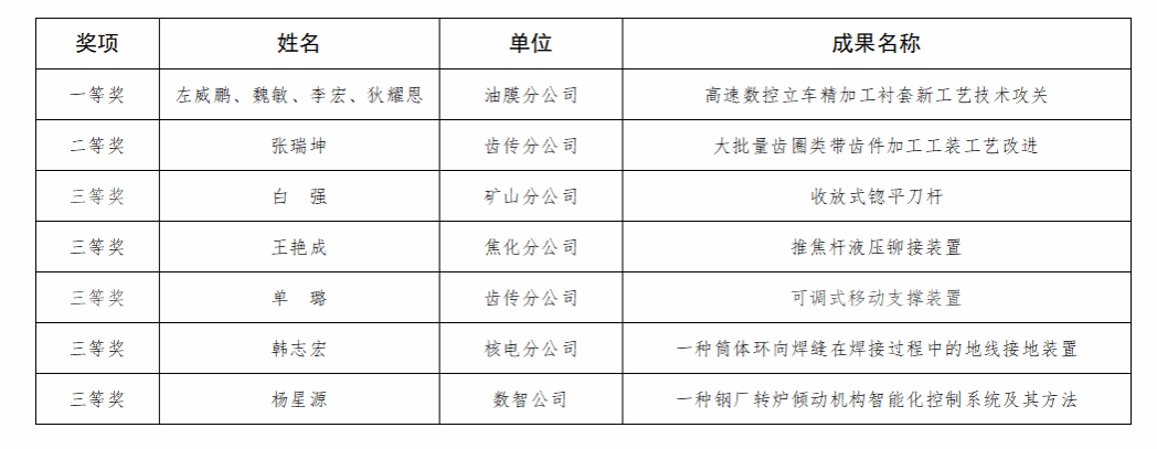 近日,2024年全國機(jī)械冶金建材行業(yè)職工技術(shù)創(chuàng)新成果獎(jiǎng)?wù)焦?,太重集團(tuán)7項(xiàng)成果獲獎(jiǎng),包括一等獎(jiǎng)1項(xiàng)、二等獎(jiǎng)1項(xiàng)、三等獎(jiǎng)5項(xiàng),再次彰顯了公司近年來科技創(chuàng)新取得的突出成績。