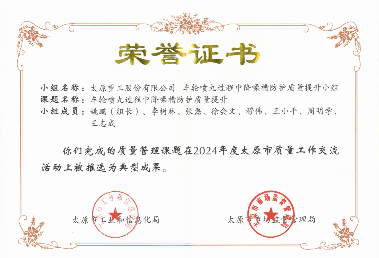 QC活動的開展,不僅是激發(fā)項(xiàng)目一線創(chuàng)新活力的有效途徑,也是推動全員參與質(zhì)量改進(jìn)的重要手段。此次獲獎不僅是對公司在質(zhì)量管理領(lǐng)域持續(xù)創(chuàng)新的高度認(rèn)可,也是對公司長期以來人才培養(yǎng)與體系構(gòu)建取得成效的見證。近年來,公司高度重視質(zhì)量管理工作,緊緊圍繞產(chǎn)品質(zhì)量提升,持續(xù)擴(kuò)展QC活動領(lǐng)域,推動公司質(zhì)量管理水平不斷提高。系統(tǒng)組織實(shí)施六西格瑪、PDCA、QC等先進(jìn)工具專題培訓(xùn),并融入質(zhì)量問題的分析處理,確保產(chǎn)品改進(jìn)取得實(shí)效;依托QMS信息化建設(shè),從基礎(chǔ)憑證、工作臺賬、指標(biāo)管理到統(tǒng)計(jì)報(bào)表,全面建立“日填報(bào)、周統(tǒng)計(jì)、月匯總”的質(zhì)量指標(biāo)統(tǒng)計(jì)和反饋體系……公司依托先進(jìn)工具和信息系統(tǒng)持續(xù)推進(jìn)全過程質(zhì)量管控,全力打造太重標(biāo)準(zhǔn)、太重質(zhì)量、太重品牌。下一步,公司將繼續(xù)推進(jìn)六西格瑪、QC等項(xiàng)目成果建設(shè),爭取挖掘更多優(yōu)質(zhì)項(xiàng)目,為發(fā)展新質(zhì)生產(chǎn)力貢獻(xiàn)更多“太重精品”。
