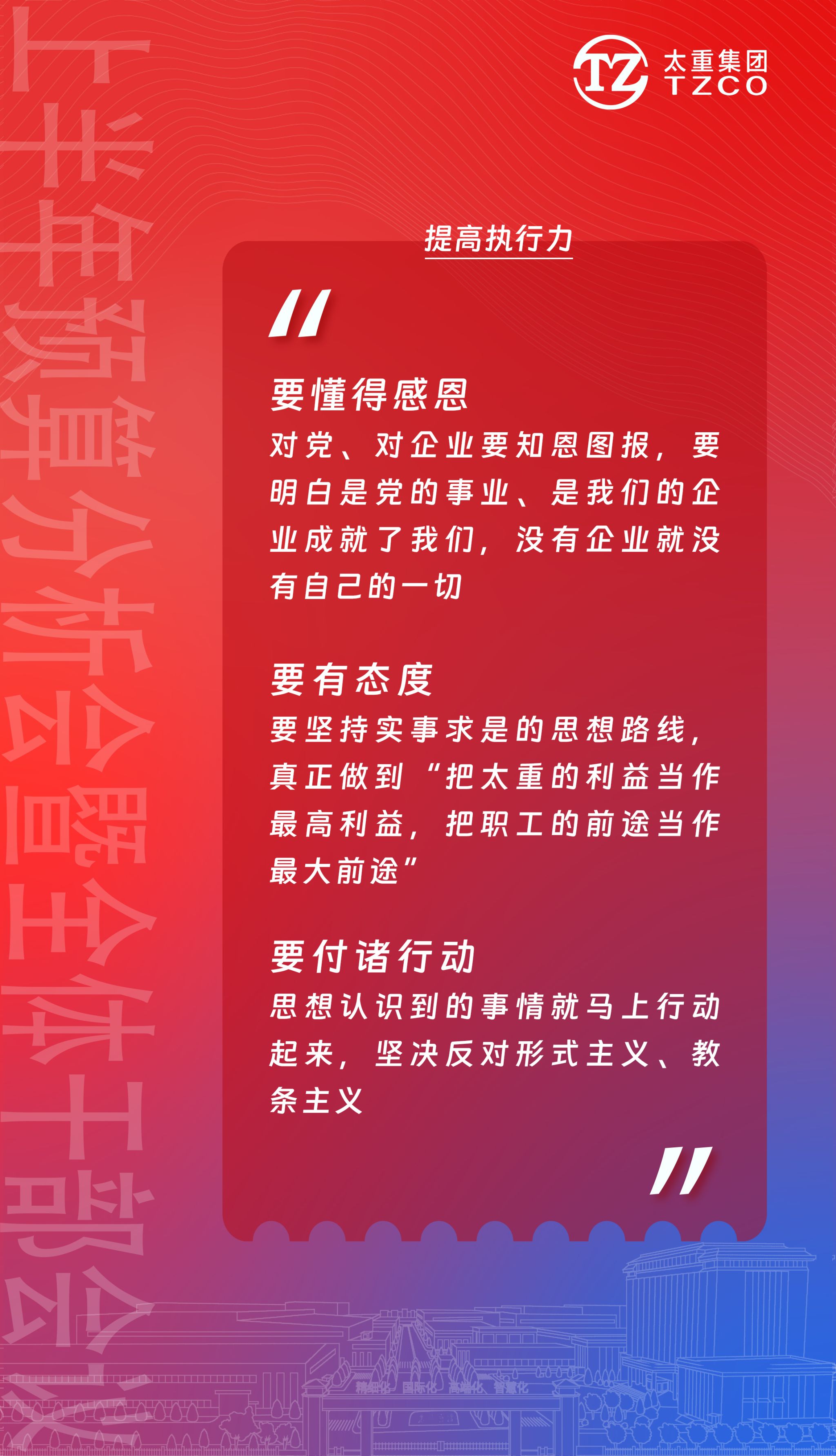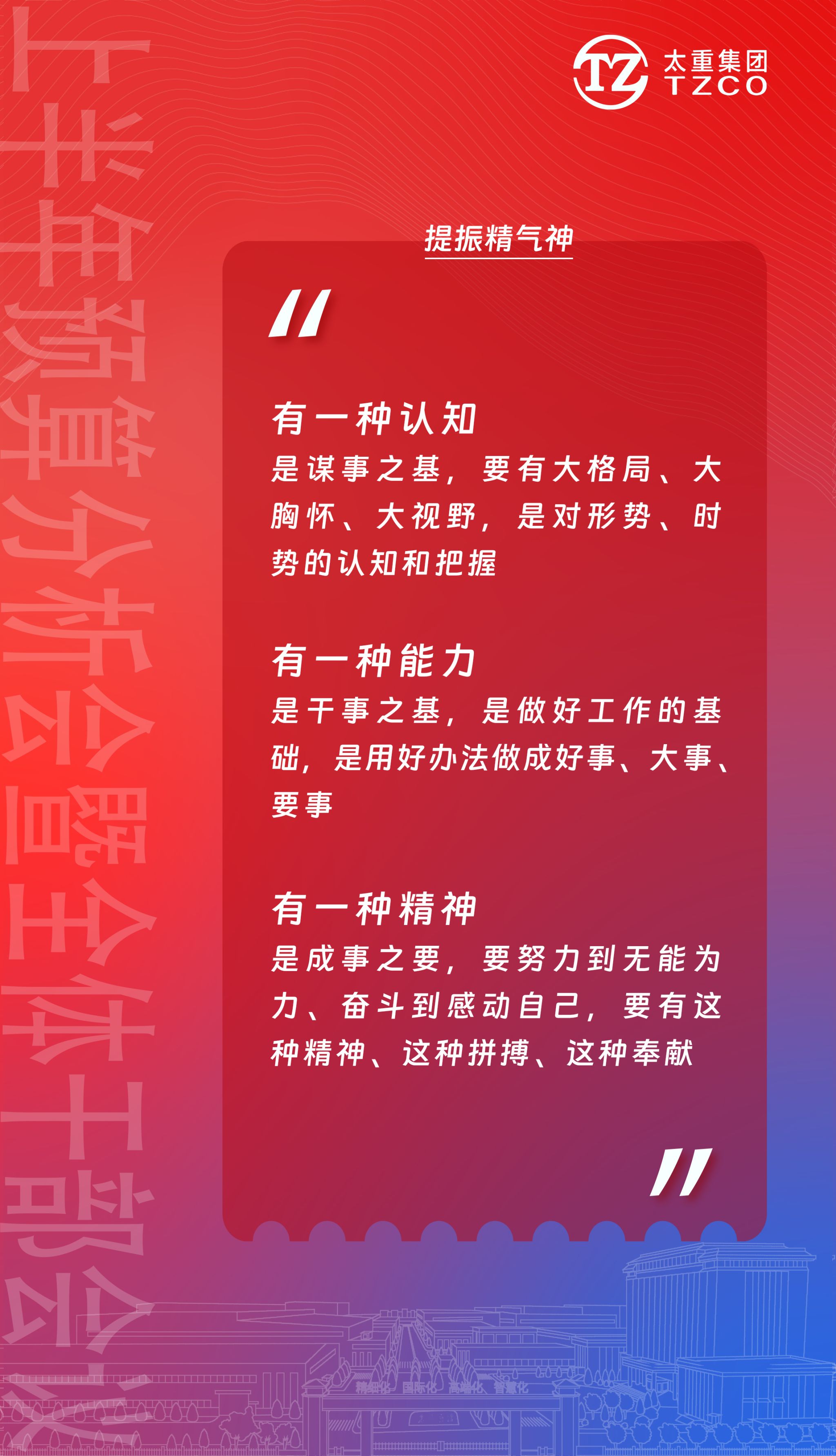 在建設(shè)新太重的偉大征程中,要有“舍我其誰”的魄力、有“必定成功”的信心、有“咬定青山不放松”的韌勁。