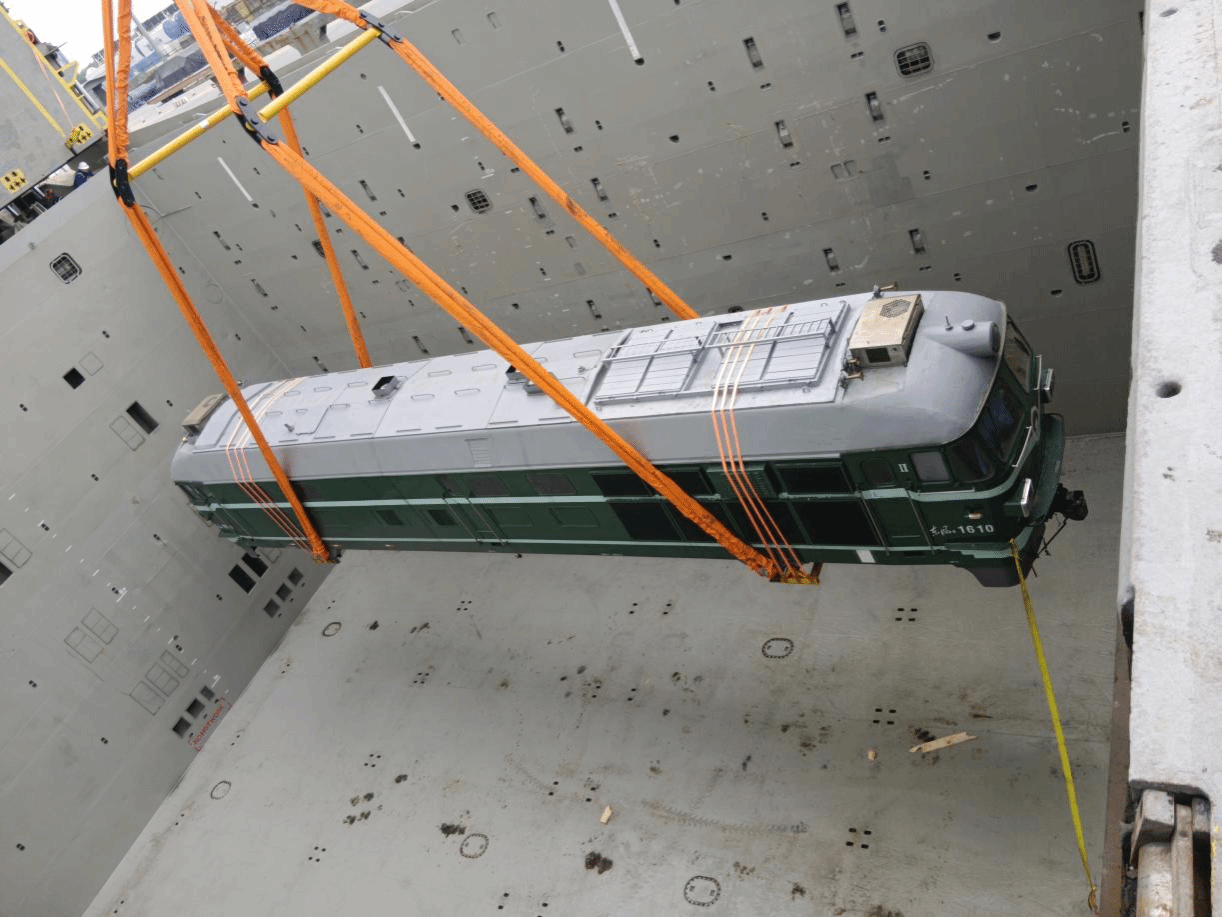 船舶進(jìn)港前,港務(wù)中心就精心組織策劃,聯(lián)動(dòng)生產(chǎn)組織、設(shè)備維保、裝卸、操作等人員,結(jié)合作業(yè)過(guò)程中可能出現(xiàn)的問(wèn)題探討模擬吊裝路徑,制定精細(xì)嚴(yán)謹(jǐn)?shù)牡跹b方案,確保高標(biāo)準(zhǔn)、高效率完成作業(yè)。因車體單件重達(dá)87噸,為確保裝船效率,運(yùn)輸車輛直接運(yùn)至碼頭前沿,省去集港、卸貨、倒運(yùn)等中間環(huán)節(jié)。整個(gè)作業(yè)過(guò)程中,現(xiàn)場(chǎng)調(diào)度員、吊裝工藝員全過(guò)程跟蹤,設(shè)備保障力量全程堅(jiān)守,第一件車體僅用時(shí)30分鐘就實(shí)現(xiàn)順利入艙、總用時(shí)不到2小時(shí)就完成了4臺(tái)車體的全部入艙作業(yè),安全高效的裝載工作,贏得了用戶贊揚(yáng)。