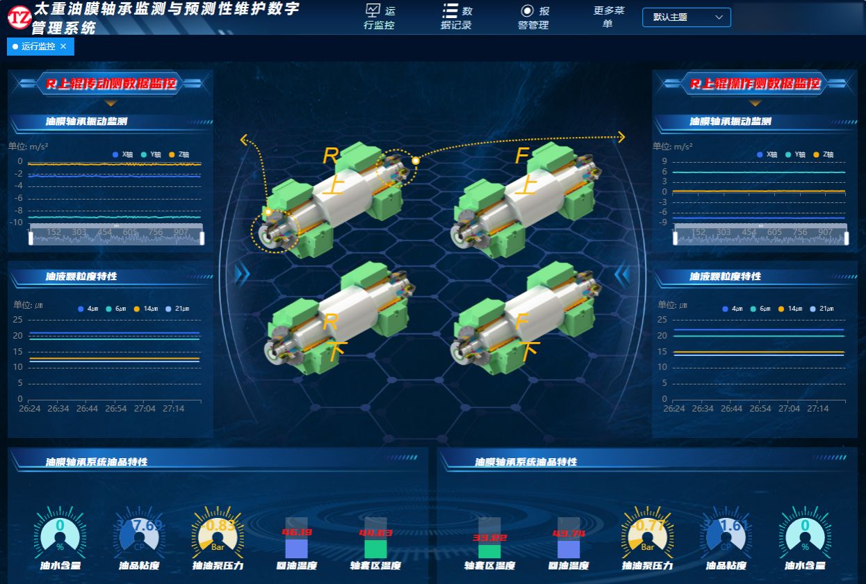 油膜軸承被稱為軋機的“心臟”,使用過程中的運行維護(hù)一直是行業(yè)內(nèi)的一大難題。太重研發(fā)的智能化監(jiān)測平臺相當(dāng)于一位“智能醫(yī)生”,能夠隨時給軋機拍攝“心電圖”,通過對油膜軸承溫度、振動、油液狀態(tài)等關(guān)鍵指標(biāo)的在線監(jiān)測,保證油膜軸承安全穩(wěn)定運行。