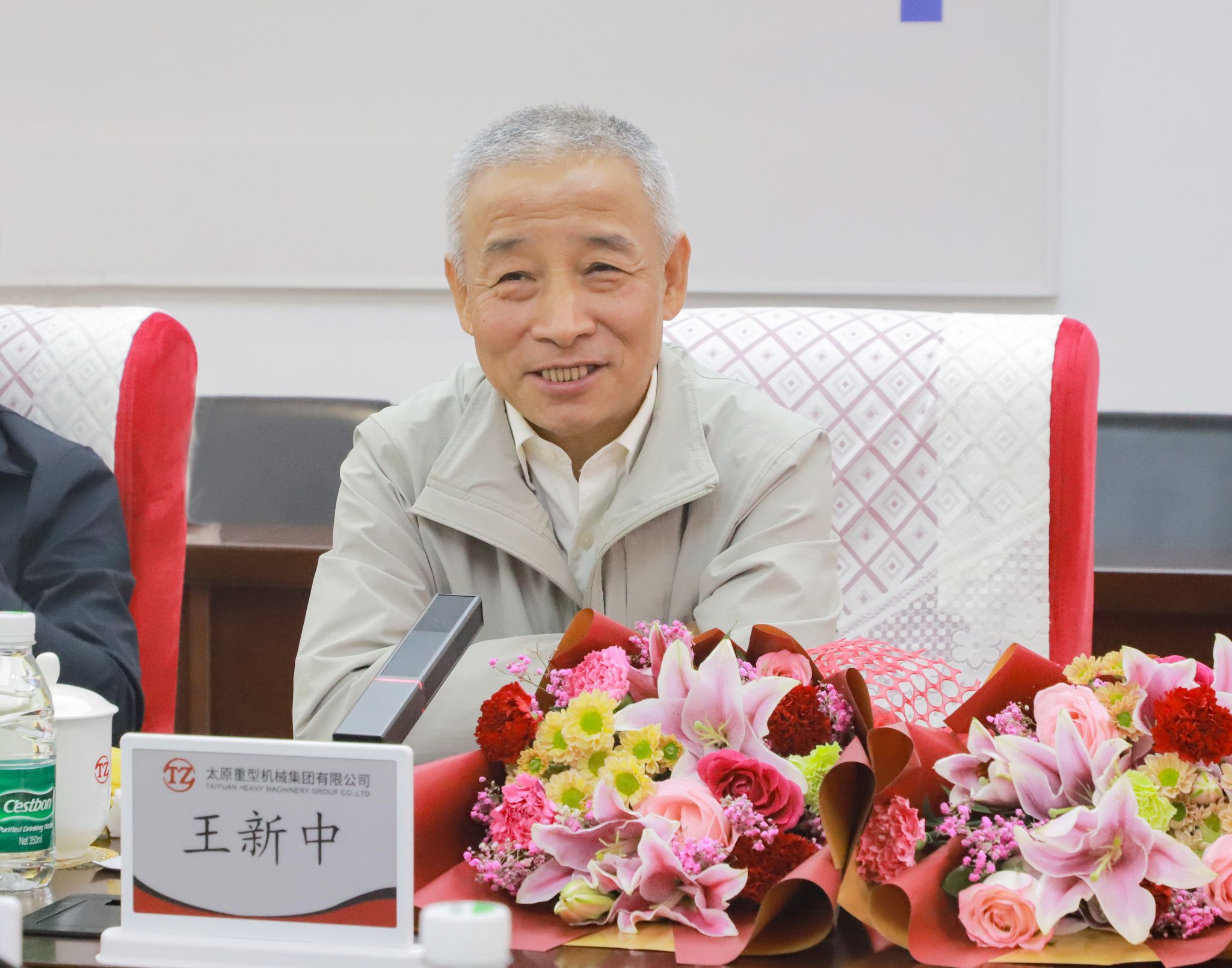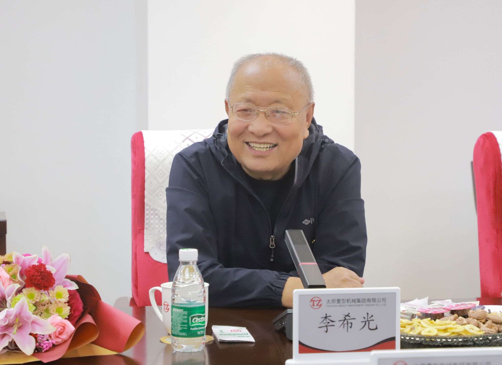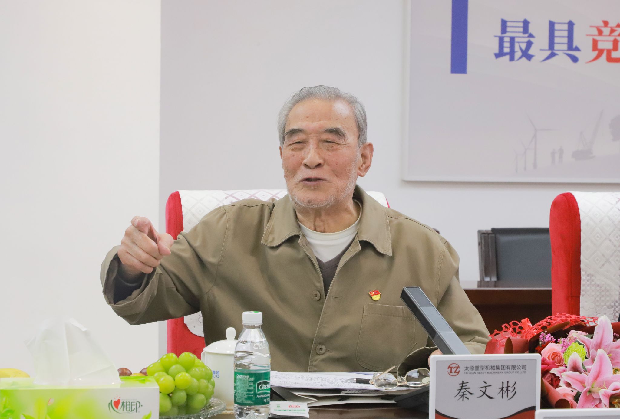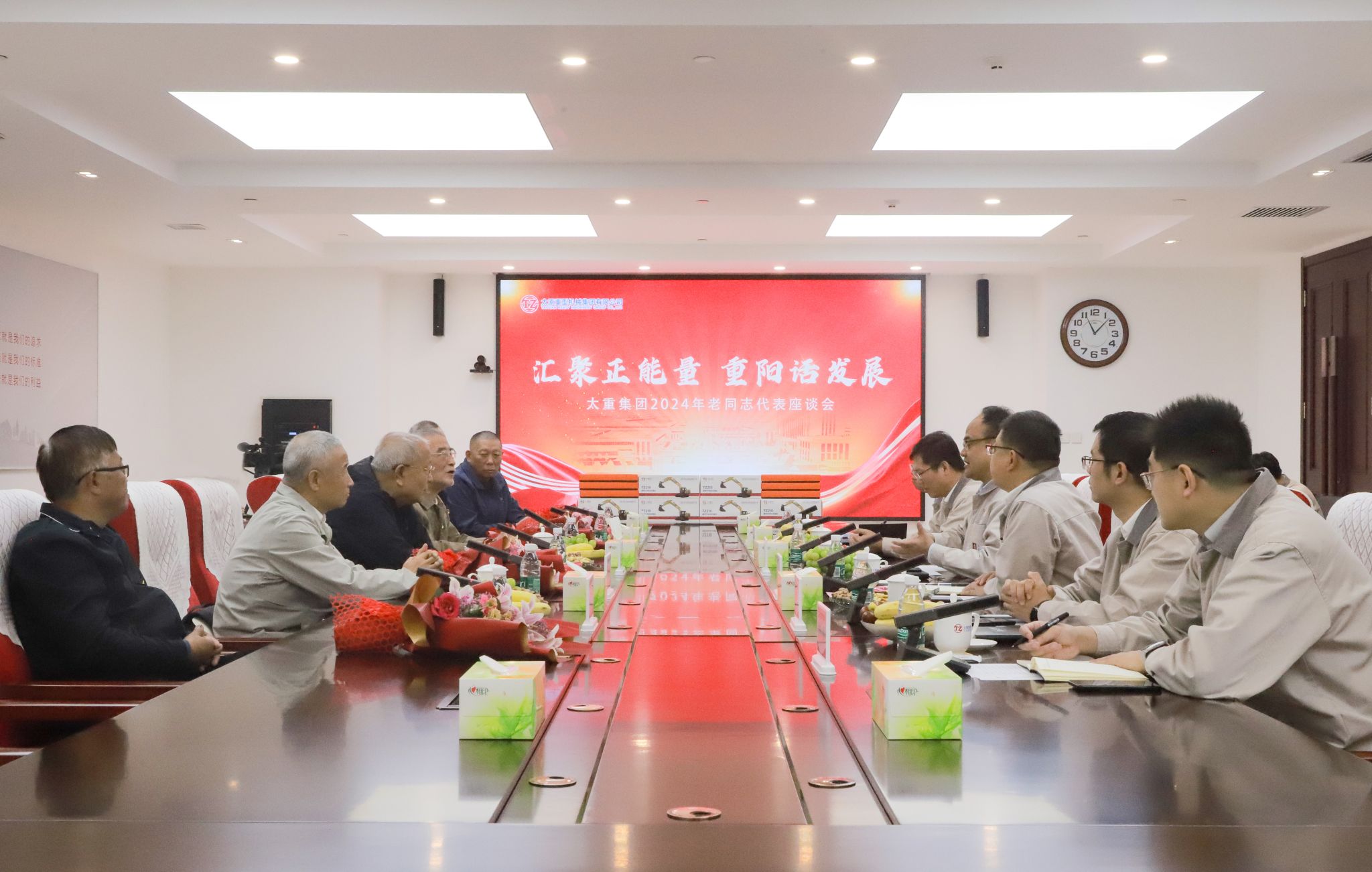上午十時(shí),老同志們來(lái)到集團(tuán)總部,公司職工代表為他們送上鮮花。參加此次座談會(huì)的“老太重們”,盡管年齡最長(zhǎng)的已逾九旬,但那份對(duì)太重的熱愛(ài)與忠誠(chéng),卻如青春般熾熱未減。