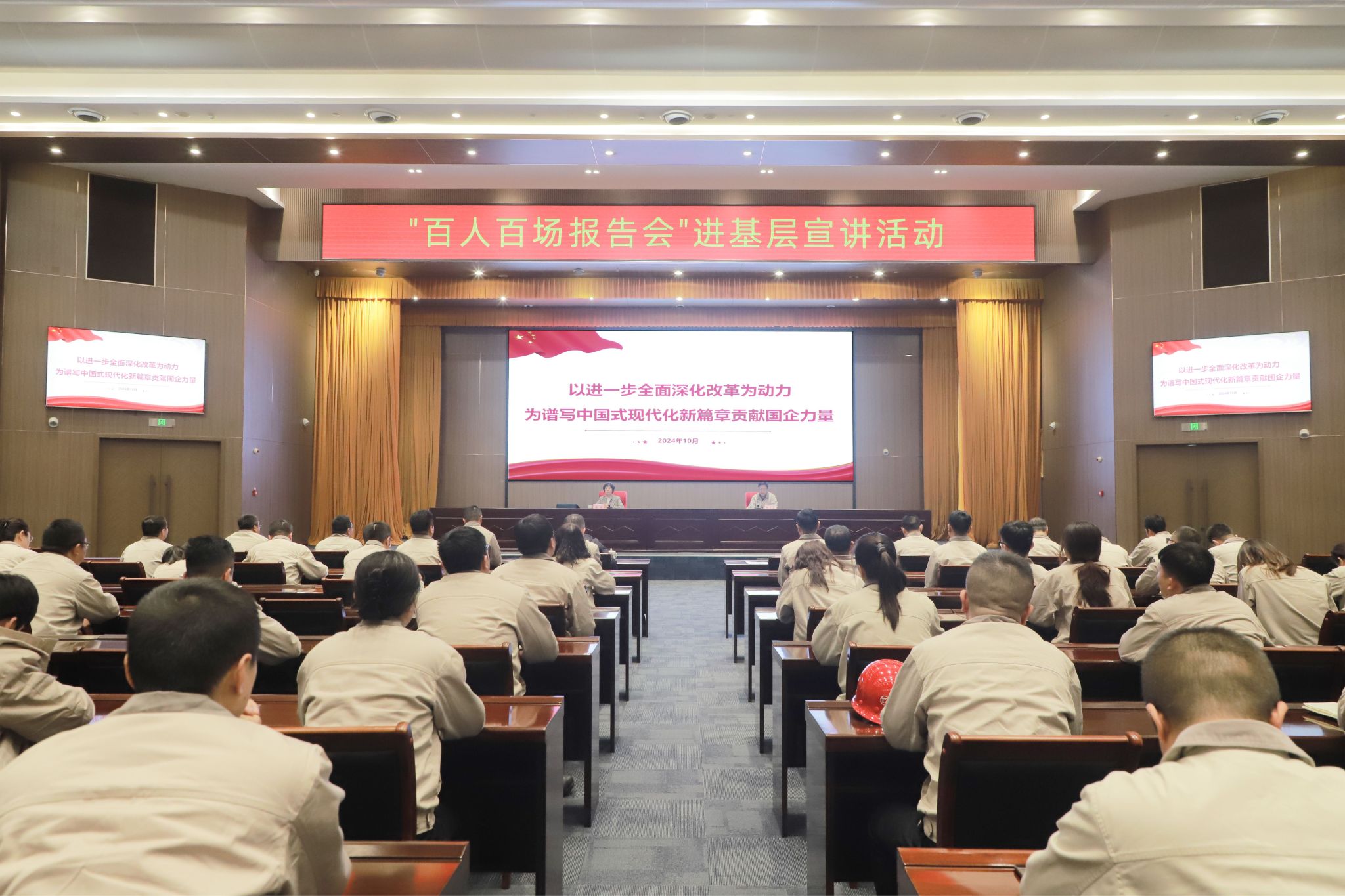 此次“百人百場報(bào)告會(huì)”進(jìn)基層宣講活動(dòng),是省委講師團(tuán)組織100名領(lǐng)導(dǎo)干部宣講團(tuán)成員赴省直廳局、省管金融企業(yè)、省屬國有企業(yè)、省屬本科院校、國防科工企業(yè)等開展的100場宣講,活動(dòng)以“報(bào)告會(huì)+基層宣講”的形式對(duì)黨的二十屆三中全會(huì)精神進(jìn)行深入的學(xué)習(xí)貫徹。集團(tuán)公司黨委常委、副總經(jīng)理韓肖重,公司中層領(lǐng)導(dǎo)干部、先進(jìn)科技工作者、基層支部書記代表、職工代表以及“匠心”宣講小分隊(duì)等成員聆聽了宣講。宣講中,薛燁以“進(jìn)一步全面深化改革為動(dòng)力,為譜寫中國式現(xiàn)代化新篇章貢獻(xiàn)國企力量”為主題,緊緊圍繞黨的二十屆三中全會(huì)提出的新思想、新觀點(diǎn)、新論斷,從理論、歷史、實(shí)踐、現(xiàn)實(shí)四個(gè)邏輯層面對(duì)進(jìn)一步全面深化改革的戰(zhàn)略考量進(jìn)行了闡述,深入剖析了國資國企改革的相關(guān)舉措,并對(duì)貫徹落實(shí)全會(huì)精神、全力以赴持續(xù)掀起學(xué)習(xí)宣貫熱潮進(jìn)行號(hào)召。她在宣講中高度評(píng)價(jià)了太重的改革發(fā)展成績,指出太重作為“共和國長子”,堅(jiān)定扛起“鑄國重器”的使命擔(dān)當(dāng),矢志不移全面深化改革,取得了矚目的成績,這是以改革之力夯實(shí)制造業(yè)之基的有力實(shí)踐。宣講既有高度,又有溫度,與會(huì)人員紛紛表示,將以此次宣講為契機(jī),持續(xù)在學(xué)懂、弄通、做實(shí)上狠下功夫,把智慧和力量凝聚到落實(shí)全會(huì)確定的目標(biāo)任務(wù)上來,拿出攻堅(jiān)克難、闖關(guān)奪隘的韌勁和勇氣,為企業(yè)改革發(fā)展作貢獻(xiàn)。宣講授課結(jié)束后,薛燁還深入太重智能高端裝備產(chǎn)業(yè)園區(qū)生產(chǎn)車間,與基層黨員職工進(jìn)行了交流,公司相關(guān)單位負(fù)責(zé)人陪同。