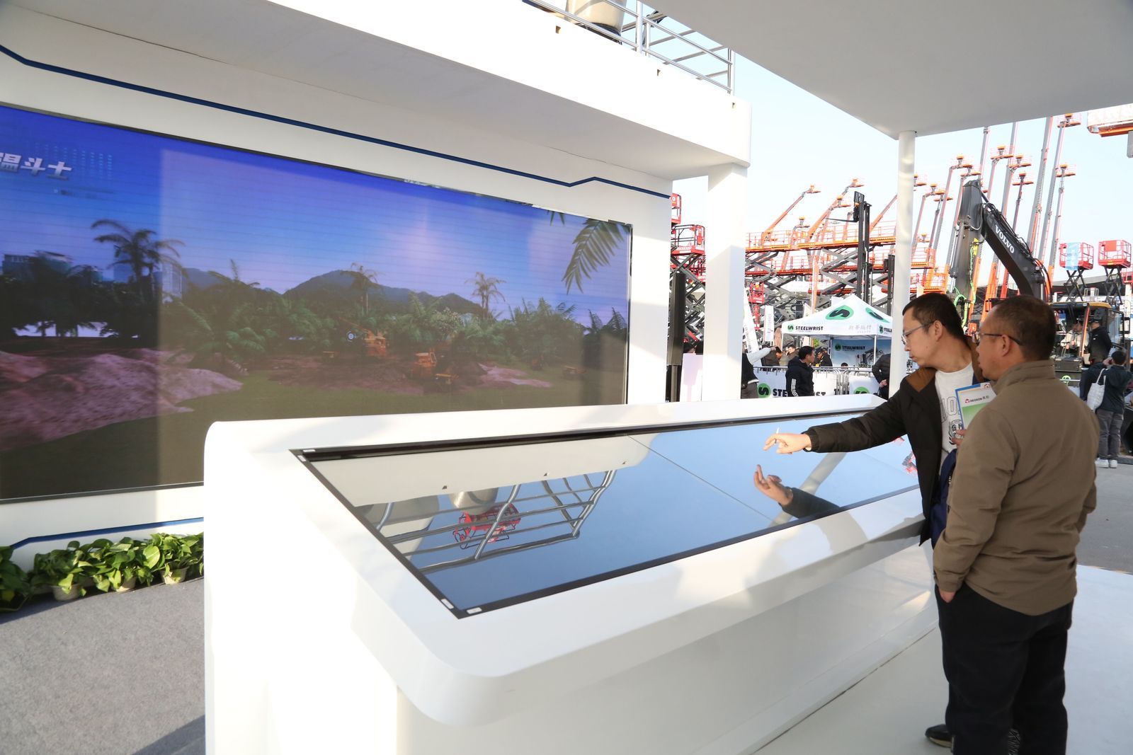 展區(qū)內(nèi),太重全工況“一攬子”解決方案的互動(dòng)長屏成為焦點(diǎn),讓參觀者身臨其境般從北極冰原到熱帶雨林、從高樓城市至世界屋脊,感受獨(dú)一無二的太重解決方案,獨(dú)具趣味的展示方式,令此處的參觀者絡(luò)繹不絕?!按舜位?dòng)屏體驗(yàn),完全打破了我對(duì)礦山裝備的刻板印象,太重原來這么厲害!”一位參觀者將互動(dòng)屏上的各個(gè)場(chǎng)景全部體驗(yàn)了一遍。