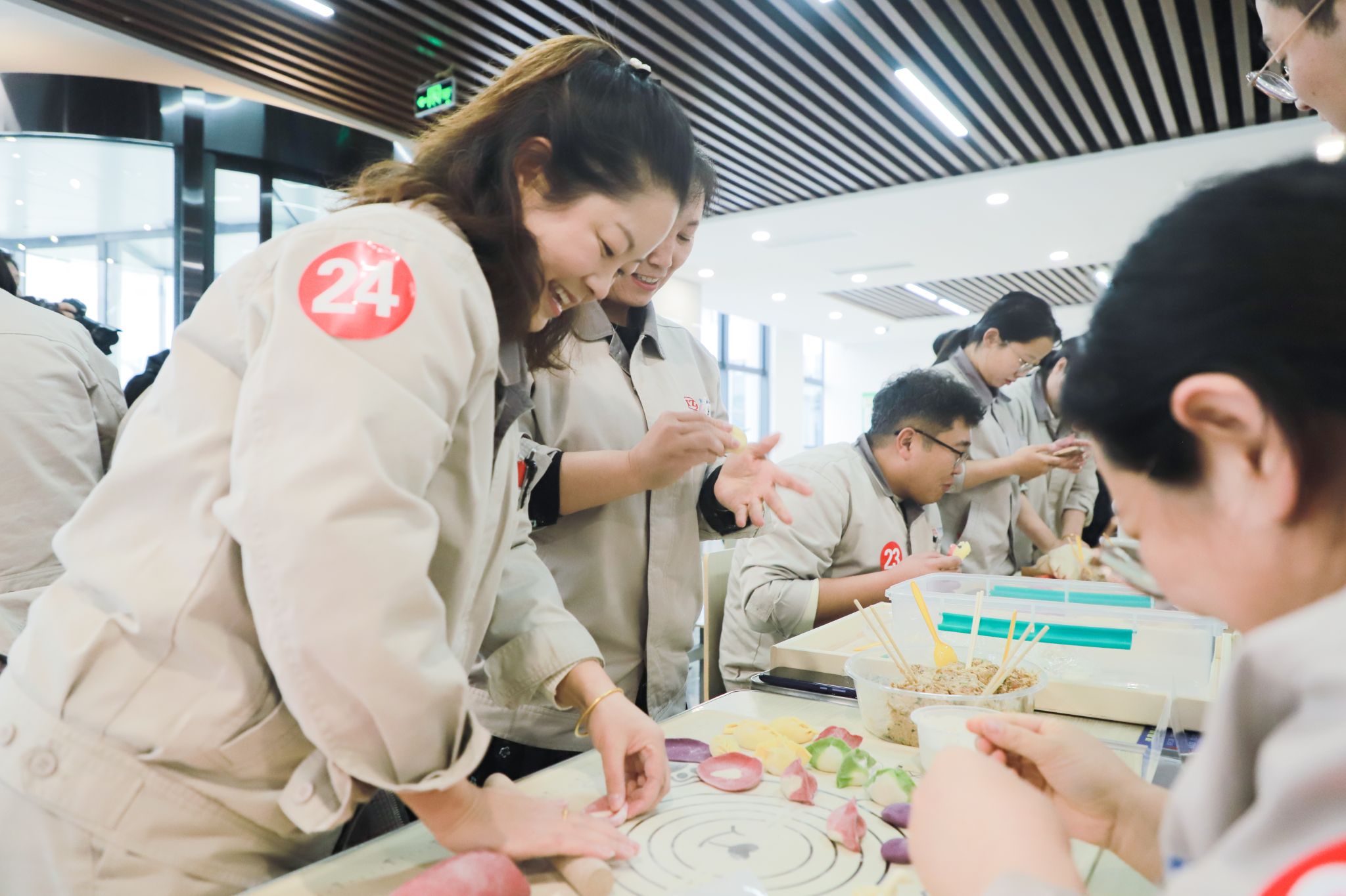 12月19日,冬至前夕,公司包餃子比賽在智能高端裝備產(chǎn)業(yè)園區(qū)東食堂舉行?!坝谢?,有魚,有平安,有幸?!备鞣N奇思妙想,伴隨著色彩繽紛的餃子逐一展現(xiàn)在職工們的巧手下,歡聲笑語凝結成冬日里最溫暖的祝福。