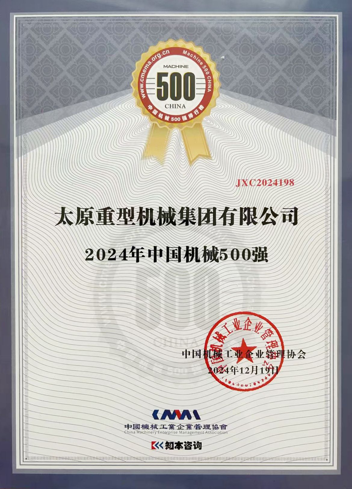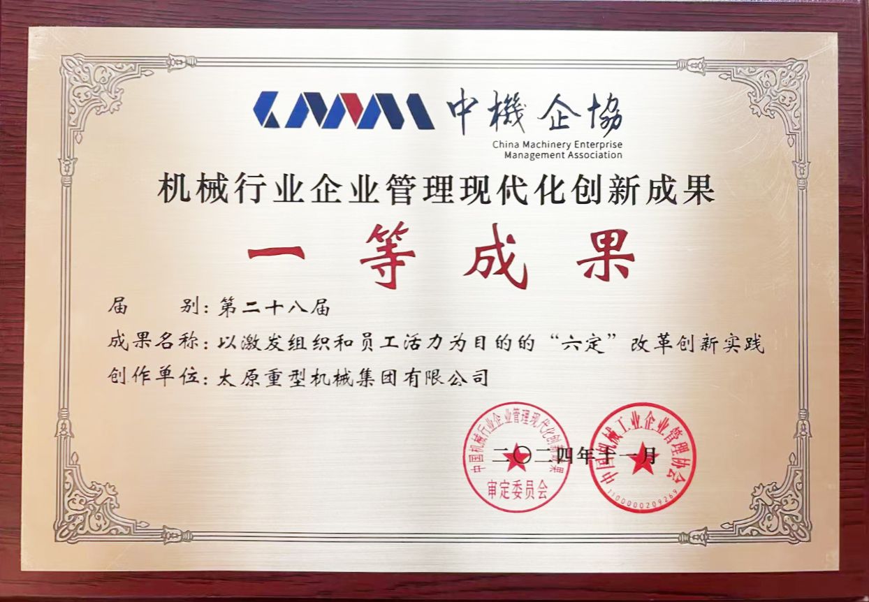 太原重型機(jī)械集團(tuán)有限公司蟬聯(lián)上榜中國機(jī)械500強(qiáng);太重“‘六定’改革創(chuàng)新實(shí)踐”項(xiàng)目榮獲機(jī)械行業(yè)企業(yè)管理現(xiàn)代化創(chuàng)新成果一等成果;太重榆液喜獲“管理基礎(chǔ)工作規(guī)范化達(dá)標(biāo)企業(yè)”稱號。各類獎(jiǎng)項(xiàng)統(tǒng)統(tǒng)“拿捏”
