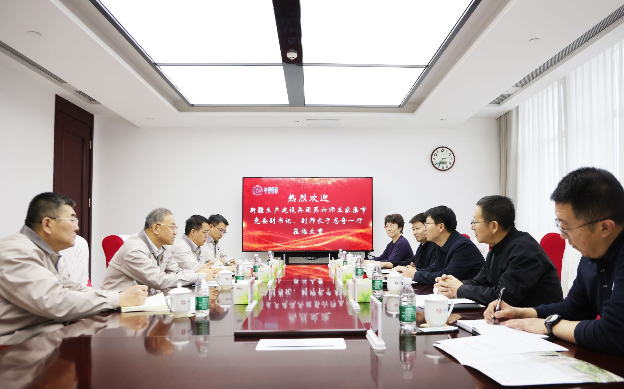綿綿汾河水,殷殷天山情。2月11日,集團(tuán)公司黨委書記、董事長韓珍堂熱情接待了新疆生產(chǎn)建設(shè)兵團(tuán)第六師五家渠市黨委副書記、副師長于志奇一行,雙方就共同推進(jìn)裝備制造產(chǎn)業(yè)合作發(fā)展,實現(xiàn)互利共贏進(jìn)行座談。