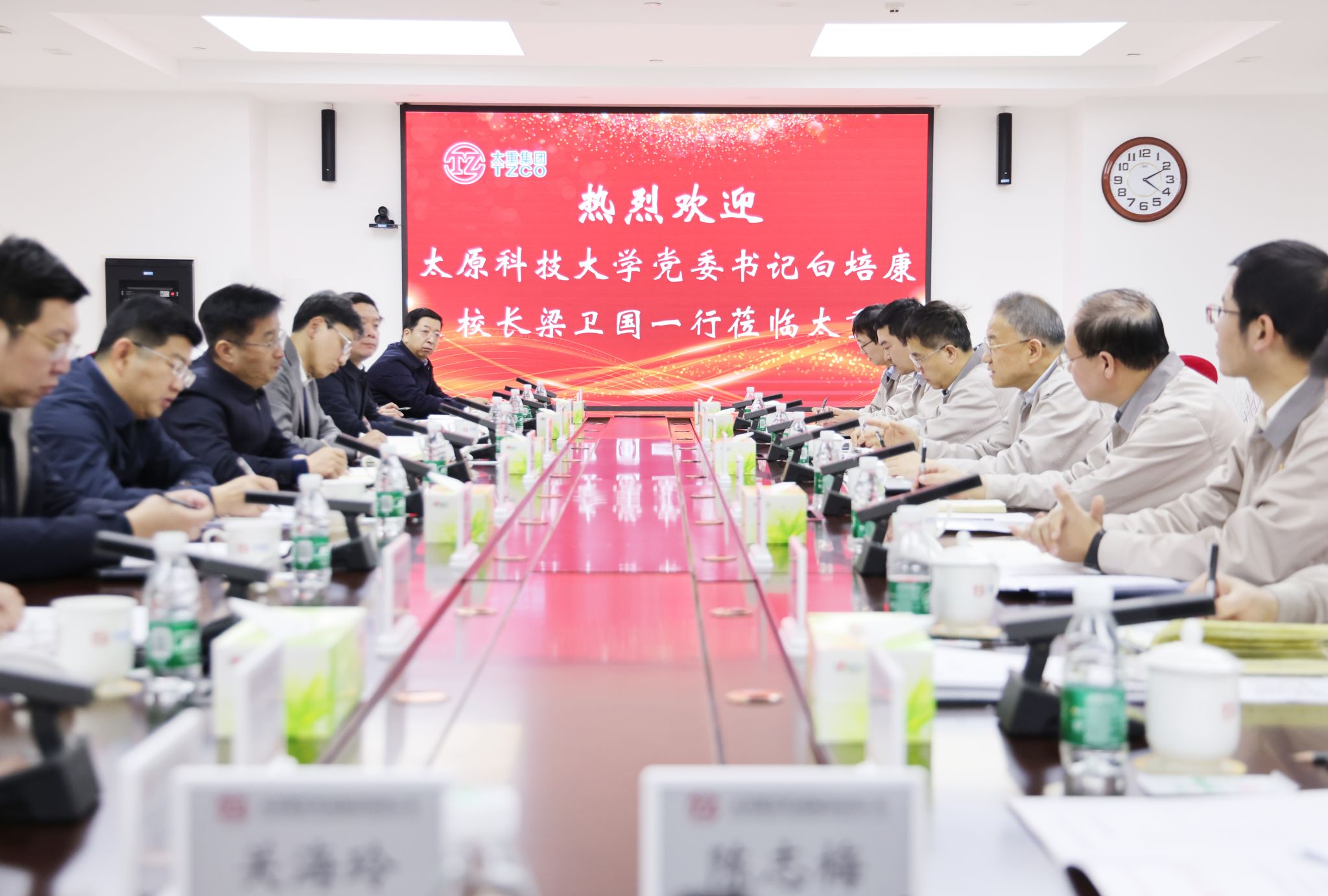 春韻悠悠,校企同耘創(chuàng)新沃野。2月18日,集團(tuán)公司黨委書記、董事長韓珍堂熱情接待了太原科技大學(xué)黨委書記白培康,黨委副書記、校長梁衛(wèi)國一行,雙方就人才培養(yǎng)、校企合作、創(chuàng)新成果轉(zhuǎn)化等工作會談交流。