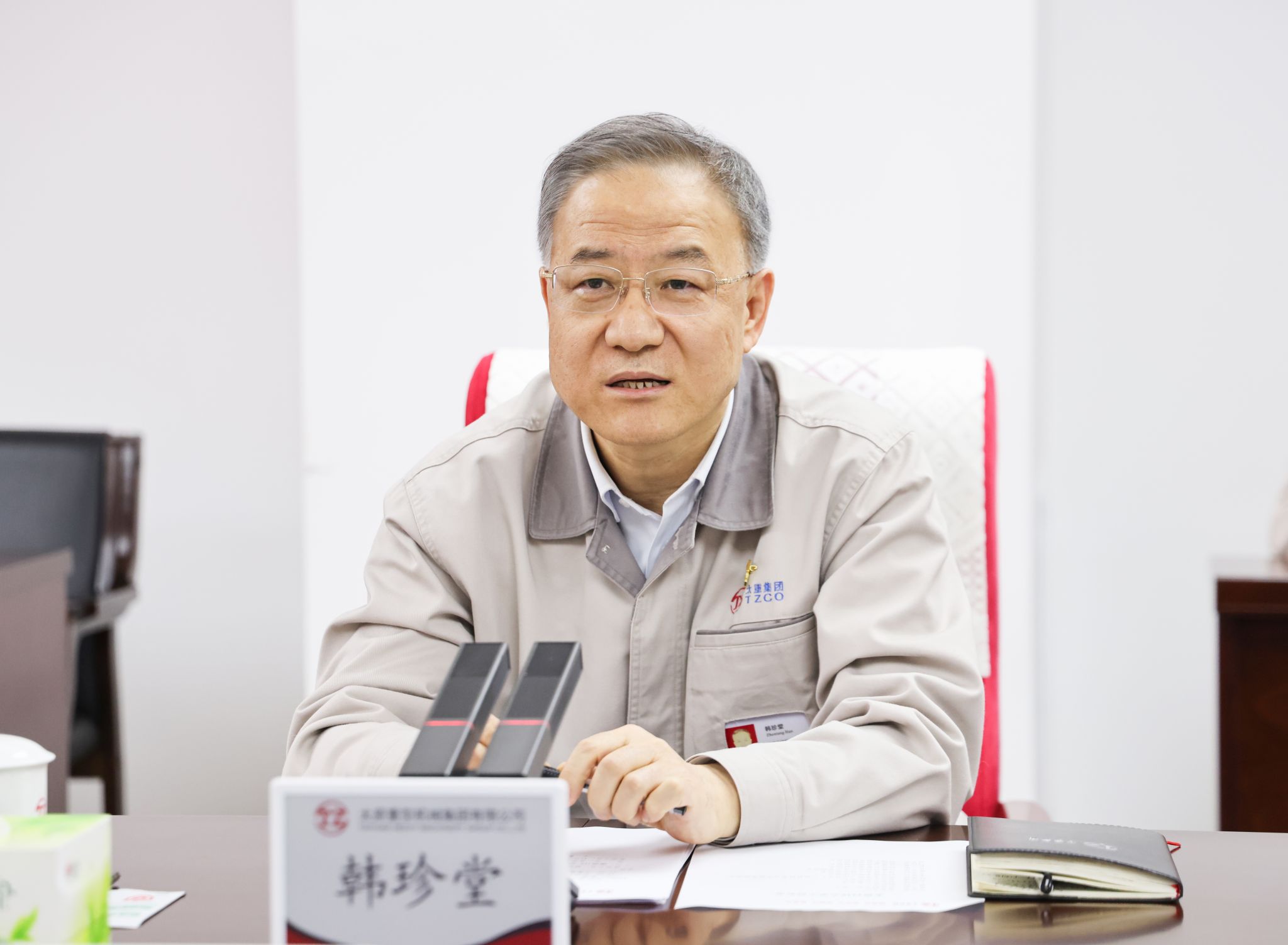 會前,韓珍堂陪同客人一行參觀了集團(tuán)公司展覽中心。集團(tuán)公司黨委常委、副總經(jīng)理史智杰,總經(jīng)濟(jì)師蘇偉中及相關(guān)單位負(fù)責(zé)人陪同。