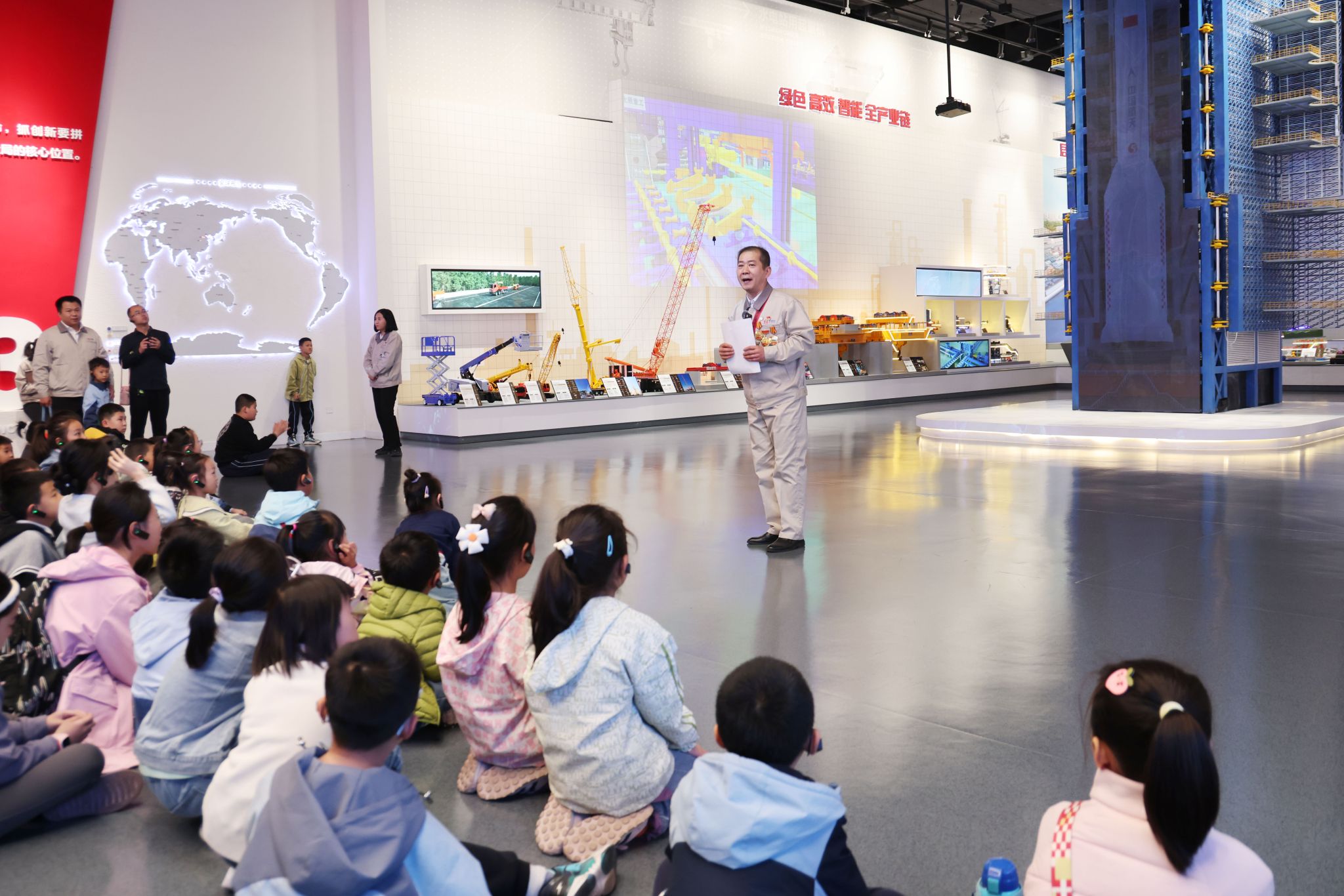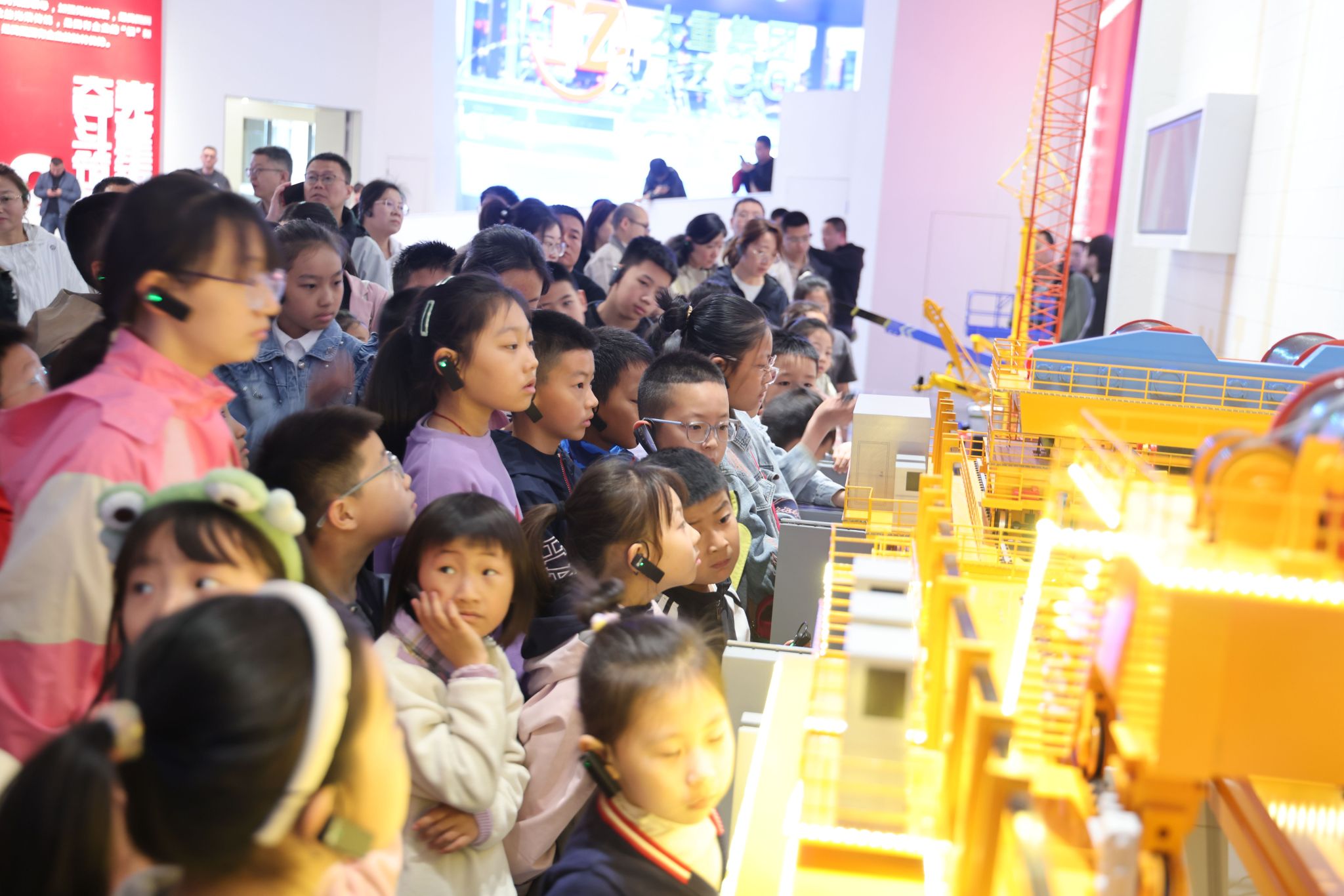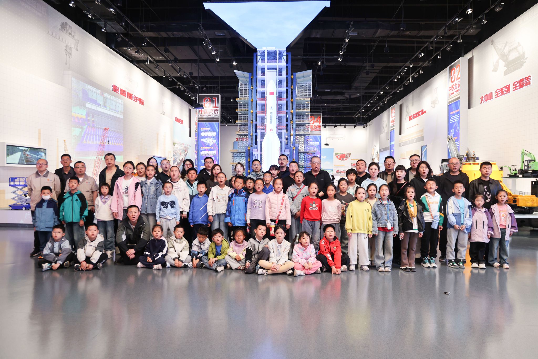活動伊始,孩子們跟隨講解員走進公司展覽中心,從珍貴的歷史手稿到航天發(fā)射塔架模型,再到各種高端化、智能化裝備,琳瑯滿目的裝備讓孩子們應接不暇、直呼過癮。當智能無人叉車駛出,將其運載的模型緩緩呈現(xiàn)到大家眼前,孩子們無不驚嘆:爸爸媽媽的公司這么牛!