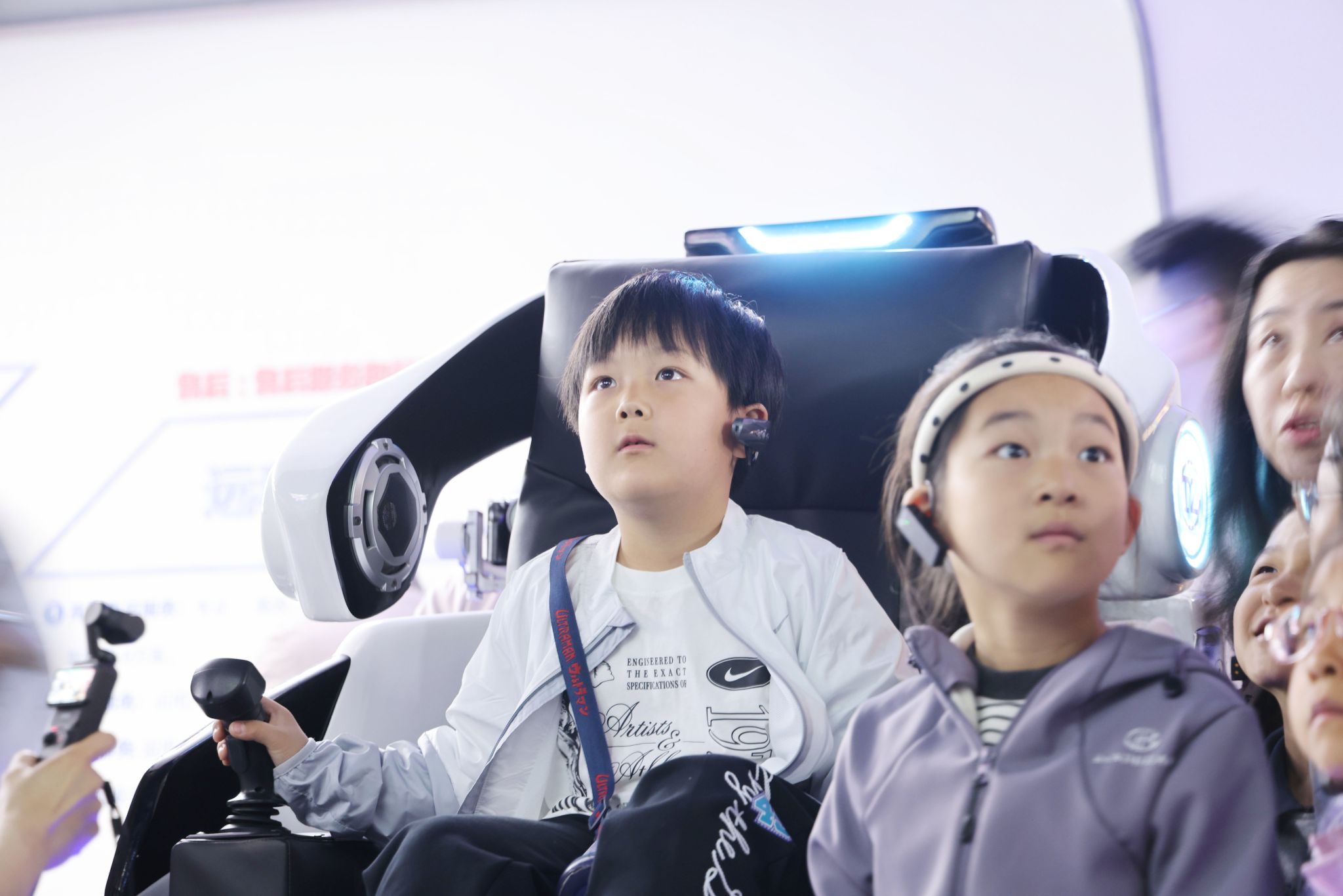 最令人期待的互動體驗環(huán)節(jié)到來!萌娃們秒變“未來工程師”,在智能設計終端前大展身手。在5G遠程操控區(qū),孩子們全神貫注地操作遠在千里之外的“巨無霸”,操作挖掘機完成裝載,現(xiàn)場驚嘆聲與掌聲此起彼伏。