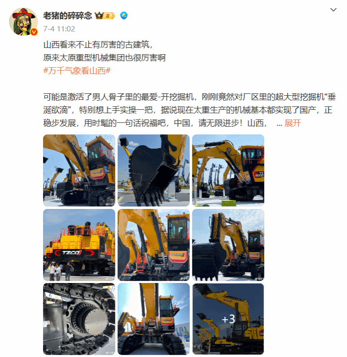 未來(lái)工廠,硬核亮相!踏入太重,仿佛走進(jìn)科幻片場(chǎng),4大類、67臺(tái)工程機(jī)械明星產(chǎn)品與60余種核心配套件全陣容亮相,網(wǎng)絡(luò)大V們長(zhǎng)槍短炮、直播設(shè)備齊上陣,或化身“工業(yè)導(dǎo)游”,實(shí)時(shí)向粉絲直播這場(chǎng)盛宴,或爭(zhēng)相與鋼鐵巨獸合影留念,感受大國(guó)重器的力量,讓我們跟隨大V鏡頭一起“云”逛展吧!