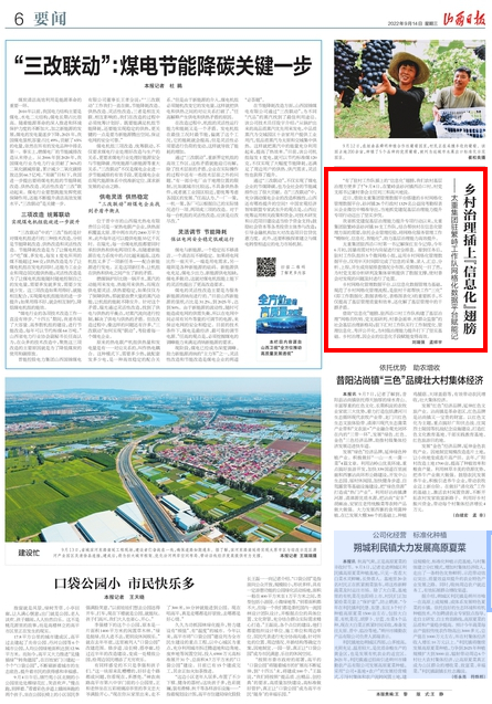 今日山西日?qǐng)?bào)以《鄉(xiāng)村治理插上“信息化”翅膀》為題,報(bào)道了太重集團(tuán)積極履行國(guó)有企業(yè)社會(huì)責(zé)任,依托企業(yè)管理經(jīng)驗(yàn),將網(wǎng)格化服務(wù)管理工作“精細(xì)化、信息化、智能化”,助力基層治理能力高效提升,讓鄉(xiāng)村治理,因企業(yè)信息化手段賦能變得高效。
