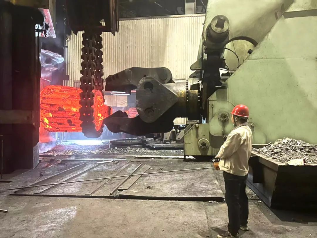 工作人員操控行車配合鍛造壓機(jī)完成生產(chǎn)