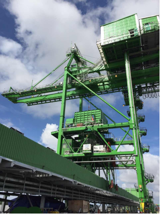 公司為芬蘭印尼起重機公司提供了6臺套岸邊集裝箱起重機,設(shè)備整機發(fā)往印尼國家港務(wù)局碼頭。岸橋前伸距48米、軌距26米、吊鉤橫梁起重能力50噸、集裝箱吊具下起重能力40噸,該項目是我司首次整機、制造、調(diào)試及發(fā)運的大型岸邊集裝箱起重機,增加了印尼國家碼頭吞吐量,提升碼頭大型集裝箱裝卸的效率。
